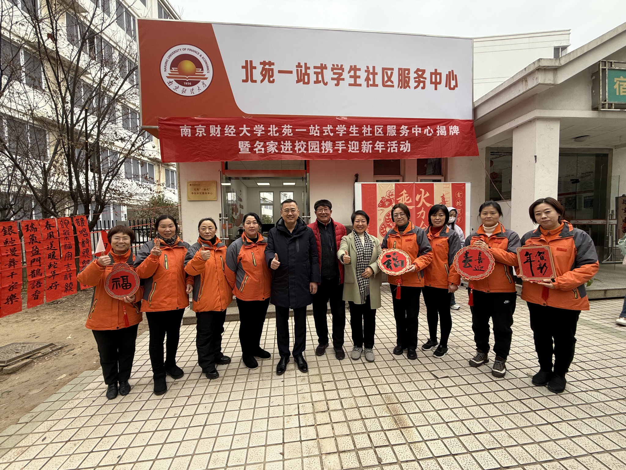 12月23日,党委常委、副校长赵国栋参加仙林校区北苑“一站式”学生社区服务中心揭牌暨名家进校园携手迎新年活动。党委学生工作部部长、学生处处长韩力争,心理健康教育中心主任、学生处副处长赵亮,艺术设计学院党委副书记张荣霞,金融学院党委副书记张士青,信息工程学院党委副书记马健,食品科学与工程学院党委副书记胡心淼参加活动。伟德官网中华优秀传统文化工作站指导老师、中国书画创作委员会副主席、著名书法家邵希平作为特邀名家参加活动。