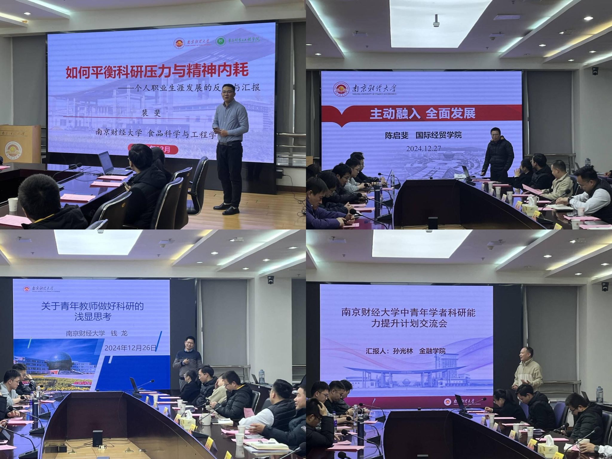 12月26、27日,伟德官网在仙林校区行政楼16楼会议室举办中青年学者科研能力提升计划系列讲座。食品科学与工程学院裴斐、国际经贸学院陈启斐、粮食和物资学院钱龙、金融学院孙光林受邀作了主题为“高校教师职业生涯规划与发展”的学术讲座。本次活动由科学研究院,党委教师工作部、人事处,青年教师发展委员会共同主办。活动由副校长张炳主持。