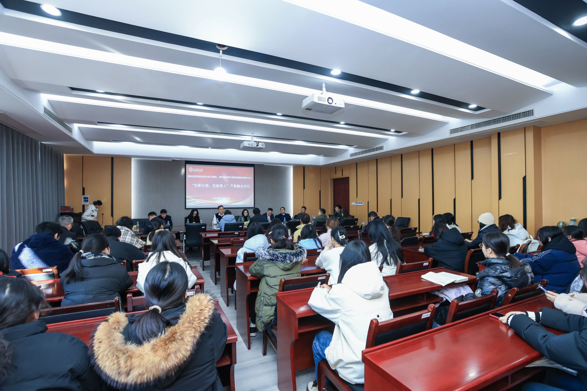 上午,庆祝本科办学40周年“创新引领,实践育人”产教融合论坛在德经楼308会议室召开。教务处副处长赵昂、来自全国各地20余家企业的校友与100余名学生济济一堂,就产教融合、校企合作与创新人才培养进行深入探讨与经验分享。论坛由国际经贸学院副院长李冠艺主持。