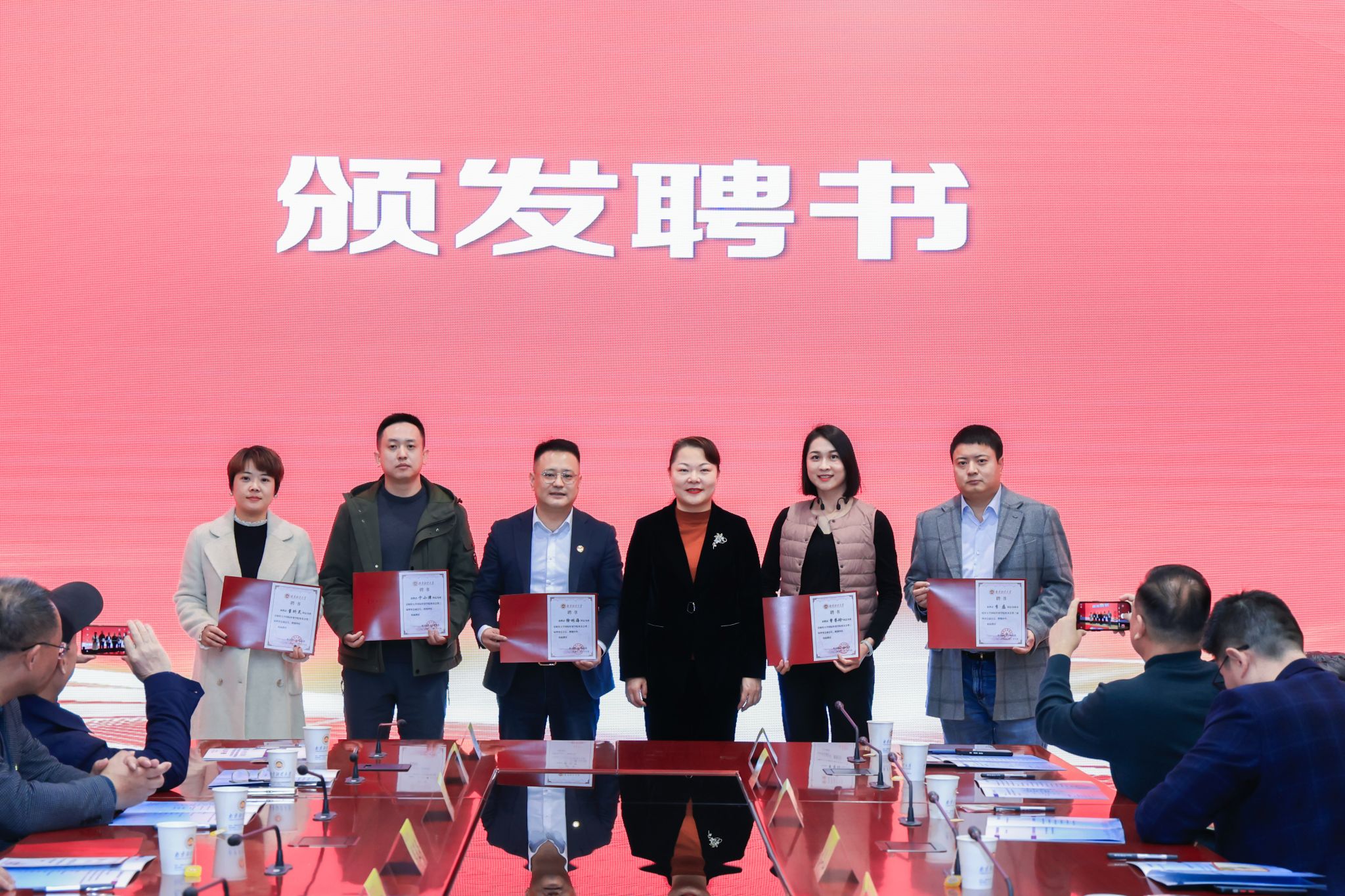 李煜副校长、陆明峰处长、周亚芳书记和徐林海会长分别为当选的第三届理事会会长、副会长、秘书长、副秘书长、顾问、名誉会长等颁发聘书,第二届理事会会长陈晓明与第三届理事会会长徐林海交接了国际经贸学院校友会会旗。