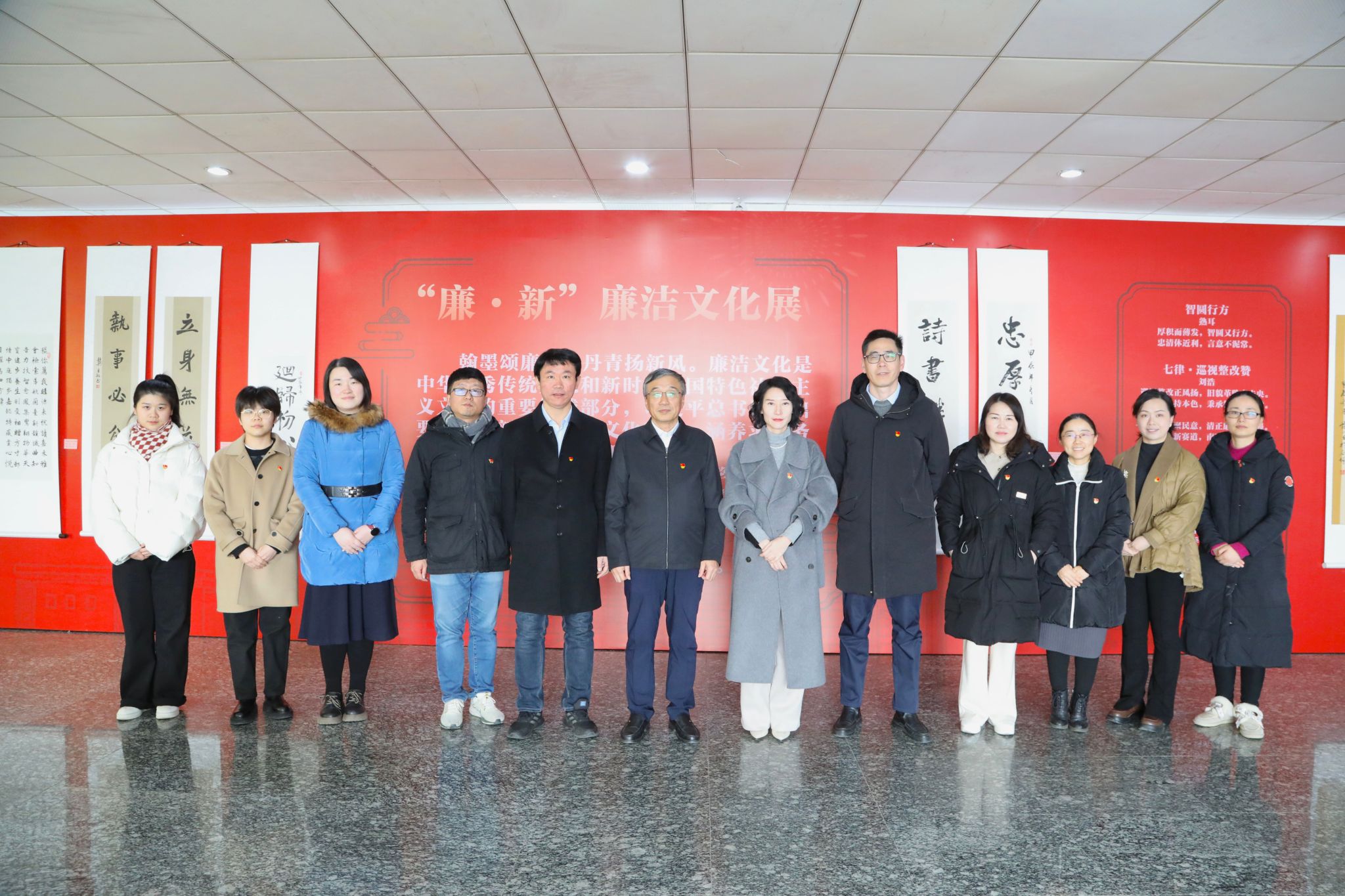 李茜书记首先来到德正楼五楼大厅,参观“廉·新”廉洁文化展。展览由新闻学院与图书馆联合主办,共精选作品16件,其中既有体现高风亮节、廉洁奉公思想的书画作品,也有紧扣反腐倡廉、全面从严治党主题的诗歌作品。这些作品融思想性和艺术性于一体,将反腐倡廉教育与传统文化相结合,发挥廉洁文化的教育、示范、熏陶作用,以廉洁文化滋养心灵、砥砺品格、弘扬正气。