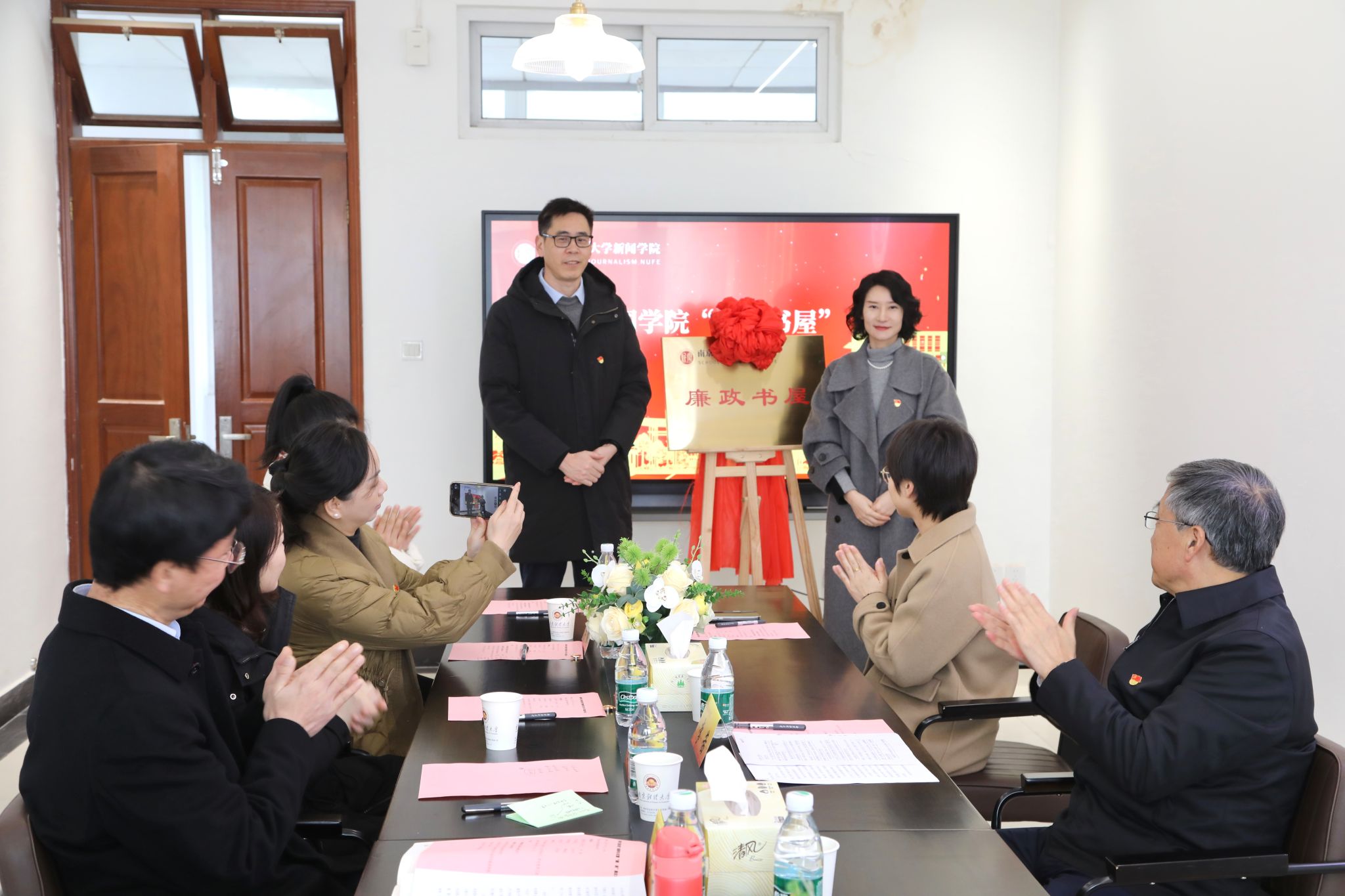 12月27日,新闻学院在仙林校区德正楼五楼举办“廉·新”廉洁文化展暨“廉政书屋”揭牌仪式。党委常委、纪委书记李茜,校纪委副书记杜兴华到场指导,新闻学院领导班子、纪检委员、各党支部书记及图书馆教师代表参加活动。