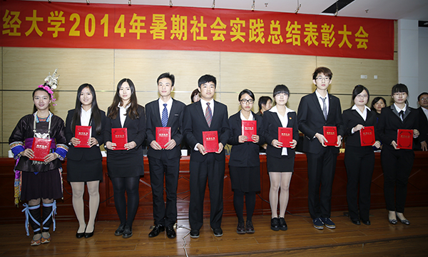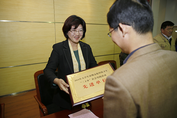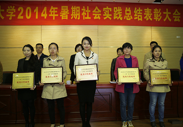与会领导为2014年暑期社会实践获奖集体及个人颁奖。