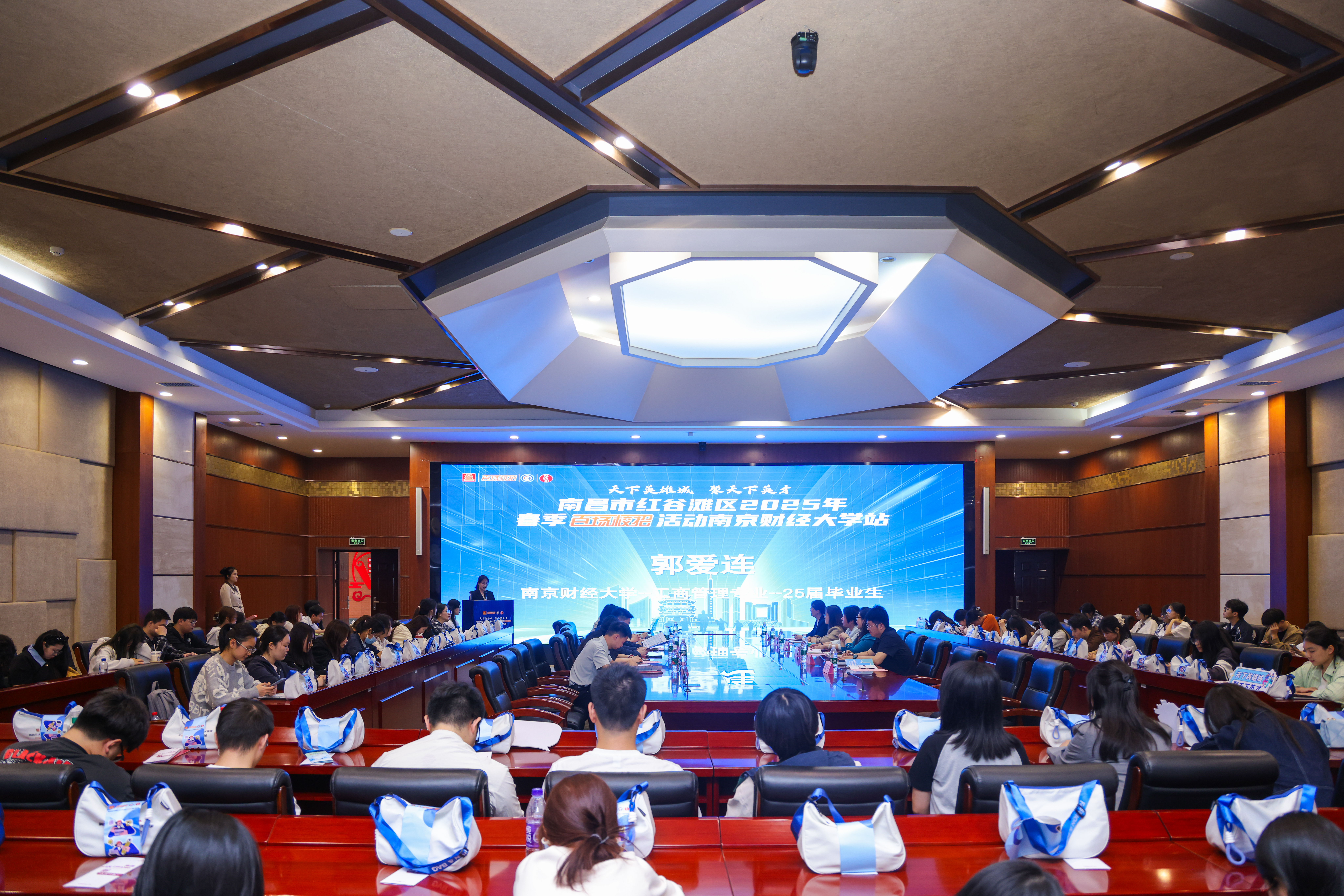 徐辉副区长对学校的热情接待表示衷心感谢,并重点介绍了南昌市红谷滩区作为省级行政中心、金融商务核心区的区位优势,详细介绍了数字经济、现代金融、商贸文旅三大主导产业发展前景以及在人才服务发展、人才住房保障、人才公共服务等方面的政策和创新做法,希望南财学子到江西、到南昌工作和生活,特别是更多江西籍学子能在毕业之后回到家乡、建设家乡。