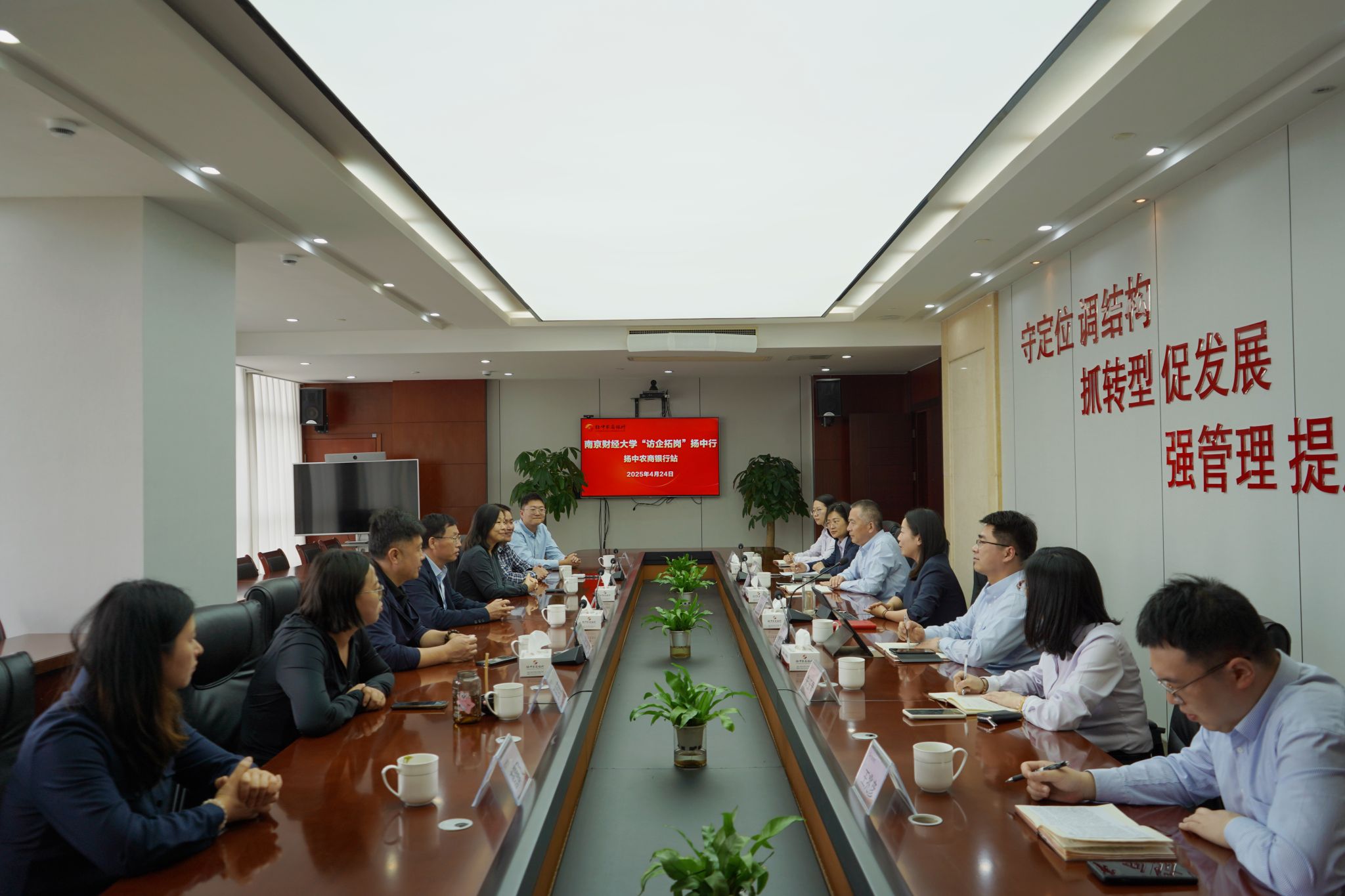 黄步龙副校长一行还前往扬中农商行进行访企拓岗。在座谈交流会上,孙菲书记介绍了学院学科建设、人才培养、实习实践、毕业生就业等情况。扬中农商行党委副书记、行长,伟德官网2001级校友叶雁琳介绍了扬中农商行的建设理念和发展情况,并重点解读了扬中农商行在新形势下的人才需求特点,希望与学校加强联动,精准化培养行内亟需的金融科技人才。副行长姚红华介绍了南财毕业生在扬中农商行的发展情况,希望双方探索交互性更强的合作模式。税务2006级校友王兆彦和会计2011级校友陈琦回顾了在伟德bv国际体育的学习经历,感谢母校的培养。黄步龙副校长表示,学校高度重视行业需求,希望强化校企合作,建立就业实习、人才培养、科研合作、社会服务等协同机制,畅通高校高质量智力资源的输出通道,推进校企共赢发展。