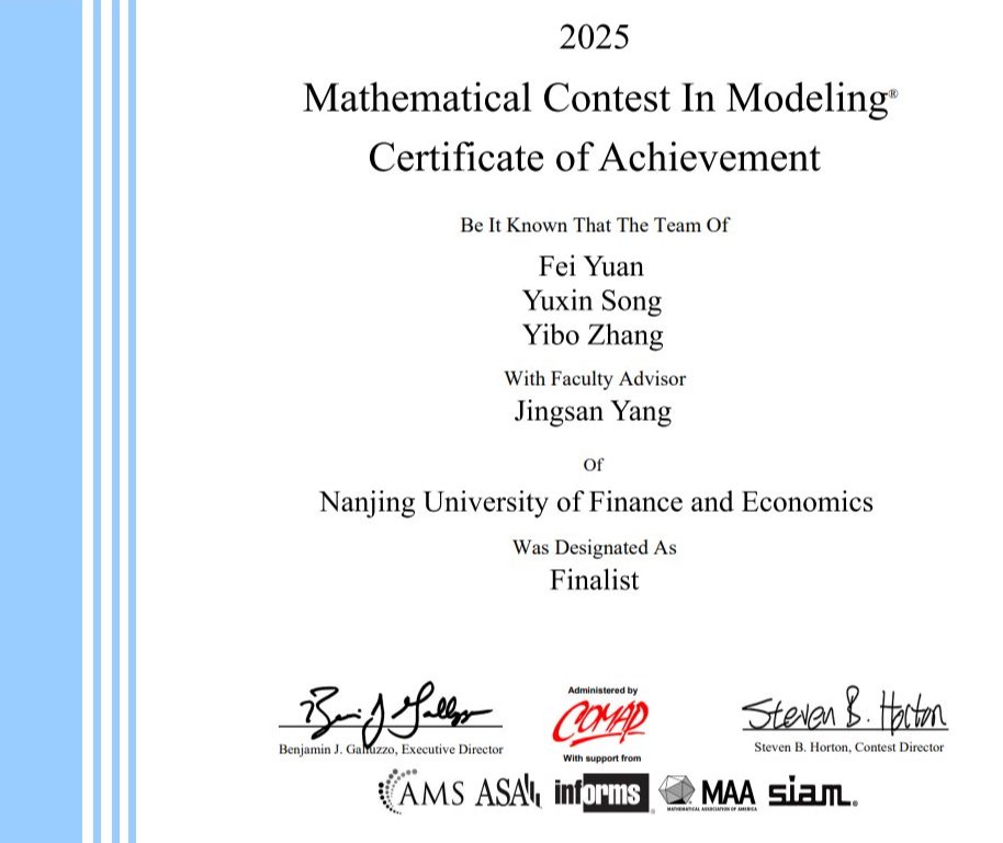 伟德官网学子在2025年美国大学生数学建模竞赛中获特等奖提名