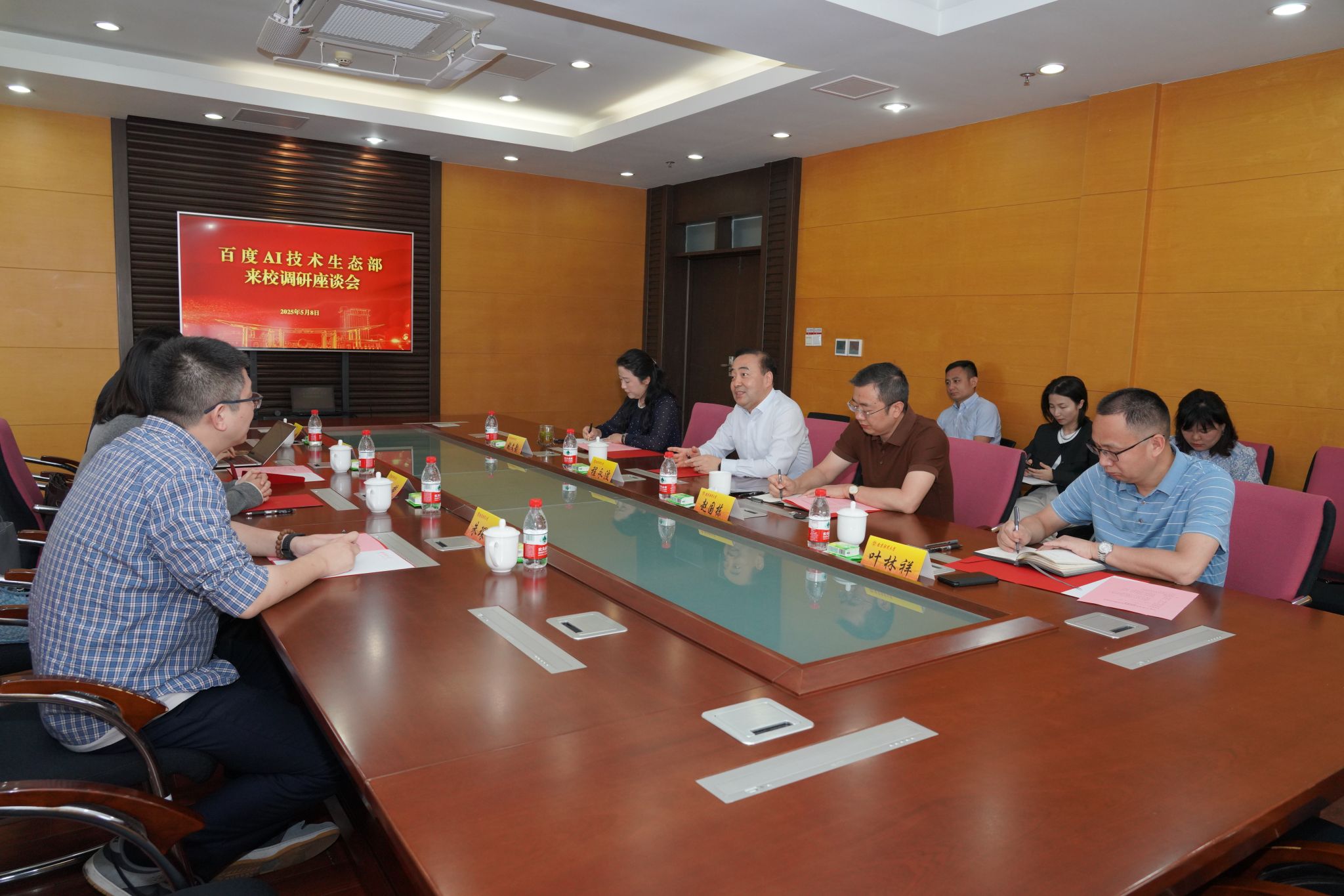 5月8日上午,百度AI技术生态运营总监谢梦一行来伟德官网调研交流,座谈会在仙林校区行政楼1101会议室召开。校长程永波,党委常委、副校长赵国栋,党委常委、副校长姚文韵,党委常委、副校长叶林祥出席座谈会。百度AI技术生态教育生态运营负责人钱芳、百度飞桨(南京)人工智能产业赋能中心副主任朱琛齐、百度AI技术生态运营经理邵一鸣,伟德官网党政办、党委宣传部、研究生院、会计学院相关负责人参加座谈会。