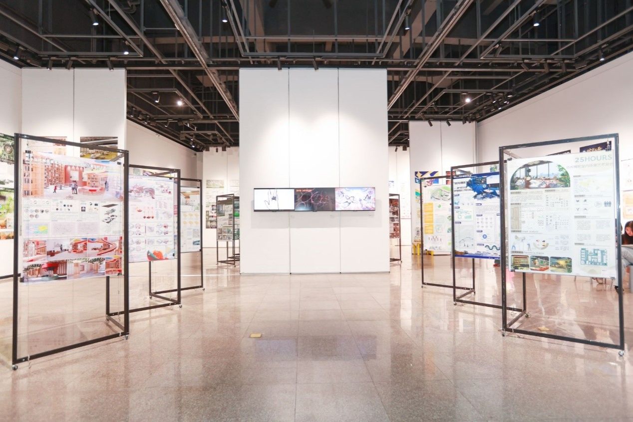 据悉,展览现场分为三个展区。在环境设计展区,建筑与自然、功能与哲思的边界被打破,设计者以“未来栖居”为命题,将可持续理念注入空间肌理,以参数化设计模拟自然生态,助力城市更新,打造文明共生的疗愈花园。视觉传达设计展区就像一座文化符号的迷宫,色彩、字体、动态影像在此交织成语言图景,设计者以“数据可视化”剖析信息洪流中的隐秘逻辑,在传统与未来的相遇中寻找视觉转译的多种可能。而动画展区的每一帧画面,都预示着一次边界的突破:元宇宙的交互叙事、AI与手绘的共舞、传统技法与新媒介的碰撞,将天马行空的想象浇筑成可栖息的能量场域。本次展览将持续到5月29日。