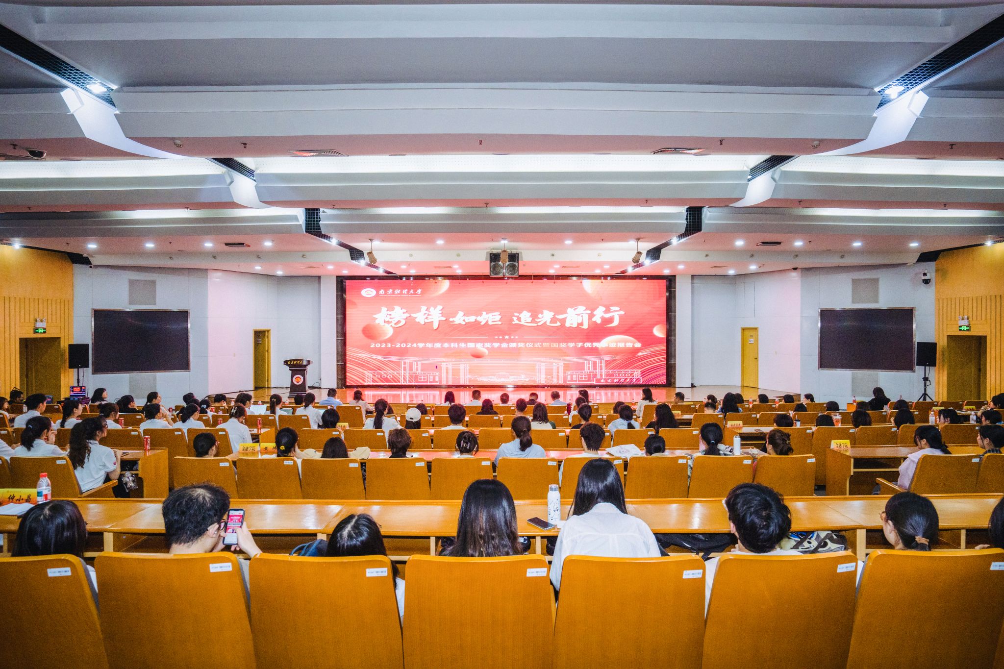 榜样如炬,追光前行。5月28日下午,伟德官网在仙林校区图书馆一楼报告厅举办2023-2024学年度本科生国家奖学金颁奖仪式暨国奖学子优秀事迹报告会。校党委书记张利民,党委常委、副校长叶林祥出席会议,党委宣传部、党委学生工作部、教务处、校团委等部门负责人,各学院党委副书记,2023-2024学年度本科生国家奖学金获得者及各学院师生代表参加会议。报告会由党委学生工作部部长韩力争主持。