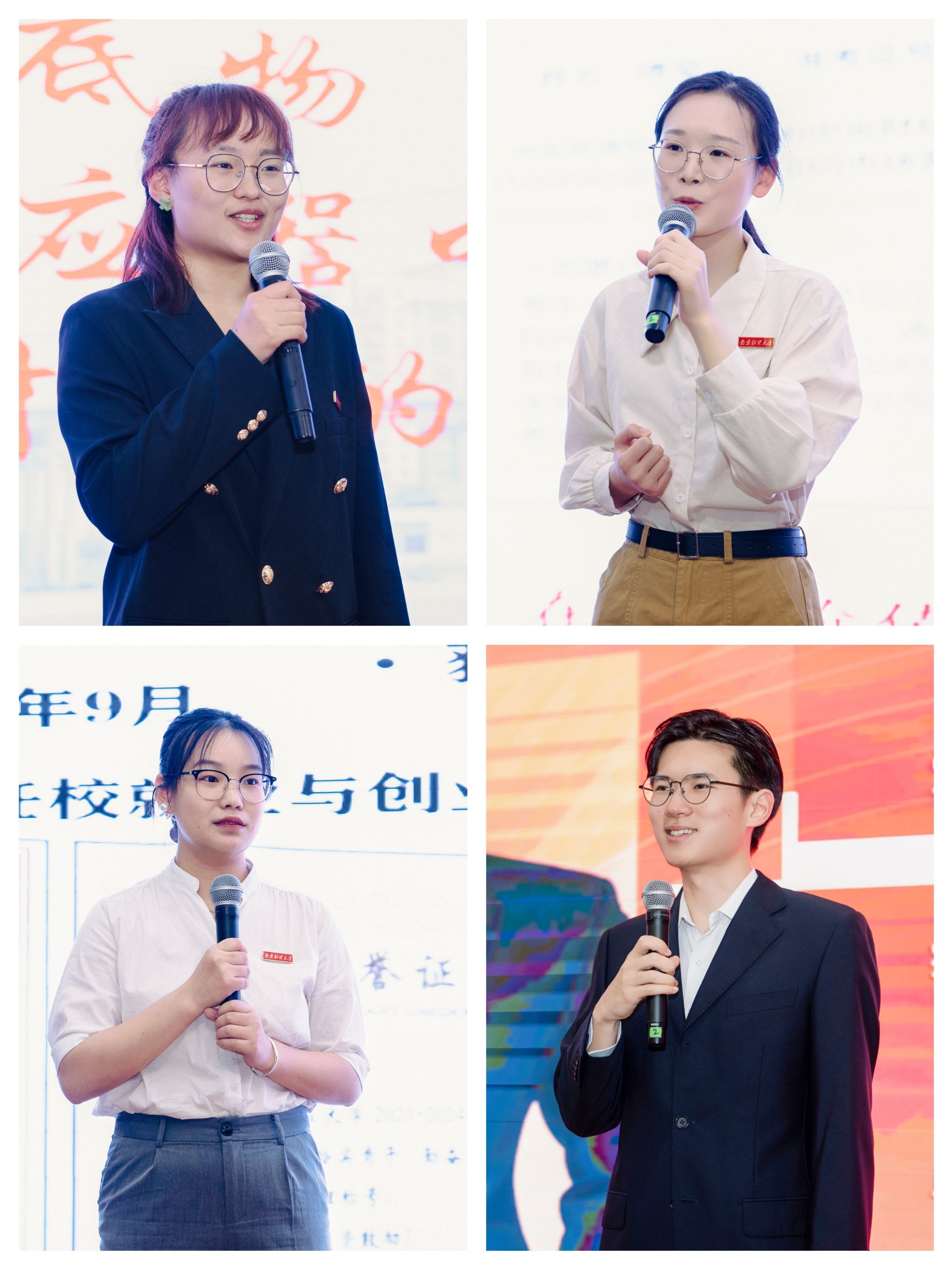 颁奖仪式后,四名国奖获得者代表结合自身经历作了精彩宣讲,展现了“自谦、自信、务实、超越”的校训精神。工商管理学院郭爱连同学以“厚积薄发”为主题,通过分享制作助学贷款线上办理流程文档、开展政策宣讲,将爱心传递至校园内外的故事,诠释了“受助-自助-助人”的温暖循环;国际经贸学院朱奕昊同学以“初心之路、信仰之路、学习之路”为主线,讲述了自己从南京市闻兰苑的爱心家教到江西赣州脐橙果园的实践经历;食品科学与工程学院林玲同学从对植物基酸奶产生浓厚兴趣,到在中科院一区发表2篇SCI论文,展现了工科女孩科研道路上的坚守与热爱;营销与物流管理学院傅莹同学将市场营销专业与公益实践创新结合,通过数据分析助力社会服务,彰显了新时代青年“学以致用、跨界融合”的开拓精神。