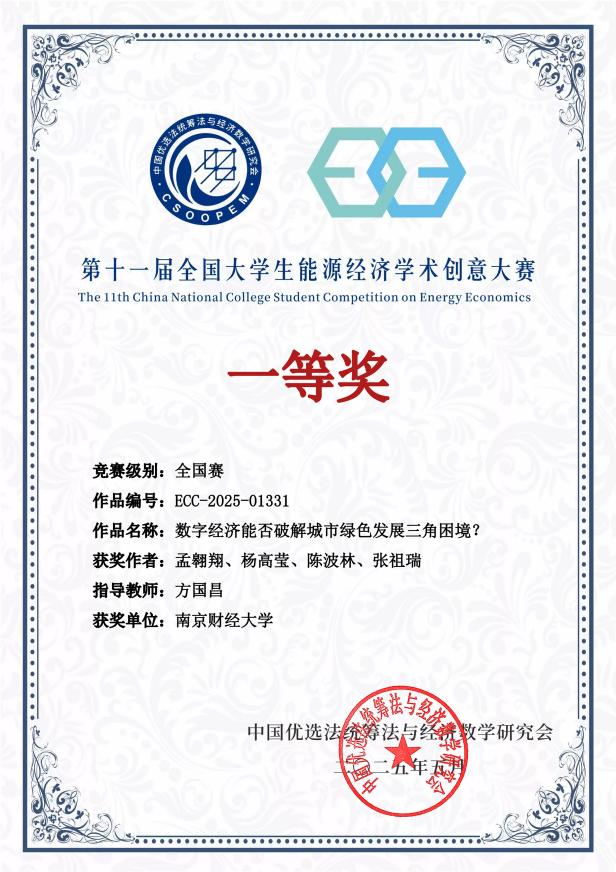 据悉,全国大学生能源经济学术创意大赛是由中国优选法统筹法与经济数学研究会主办、中国“双法”研究会低碳发展管理专业委员会执行的全国性赛事,于2023年3月正式进入中国高等教育学会发布的《全国普通高校大学生竞赛目录》。大赛积极响应国家“双碳”战略,致力于激发大学生创新意识、启迪创新思维、提升创造能力,打造碳中和人才培养的摇篮。