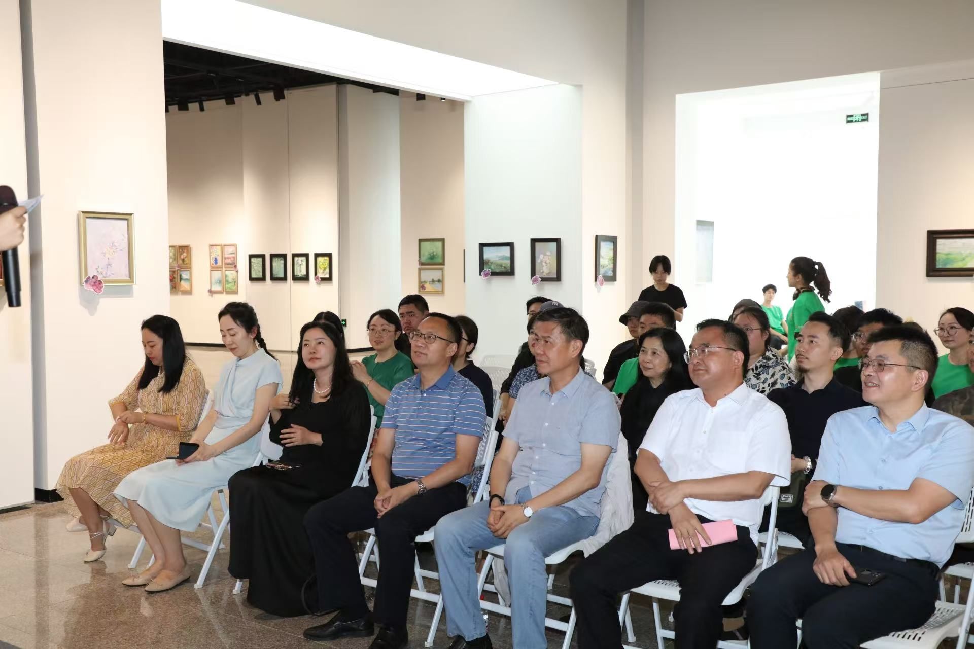 艺术设计学院党委书记刘浩致辞。他介绍了展览筹备情况和“艺途童行”公益项目实施规划。本次展出的116幅油画作品由学院2023级动画专业学生创作,是学院“艺术+公益”创新模式的生动实践,展现了艺设学子的社会责任担当。“艺途童行”公益项目以“百村焕新、万户增收、千课启智”为目标,通过艺术支教充分发挥专业优势,系统推进乡村环境改善、文化传承和教育发展,构建艺术助力乡村振兴的长效机制。