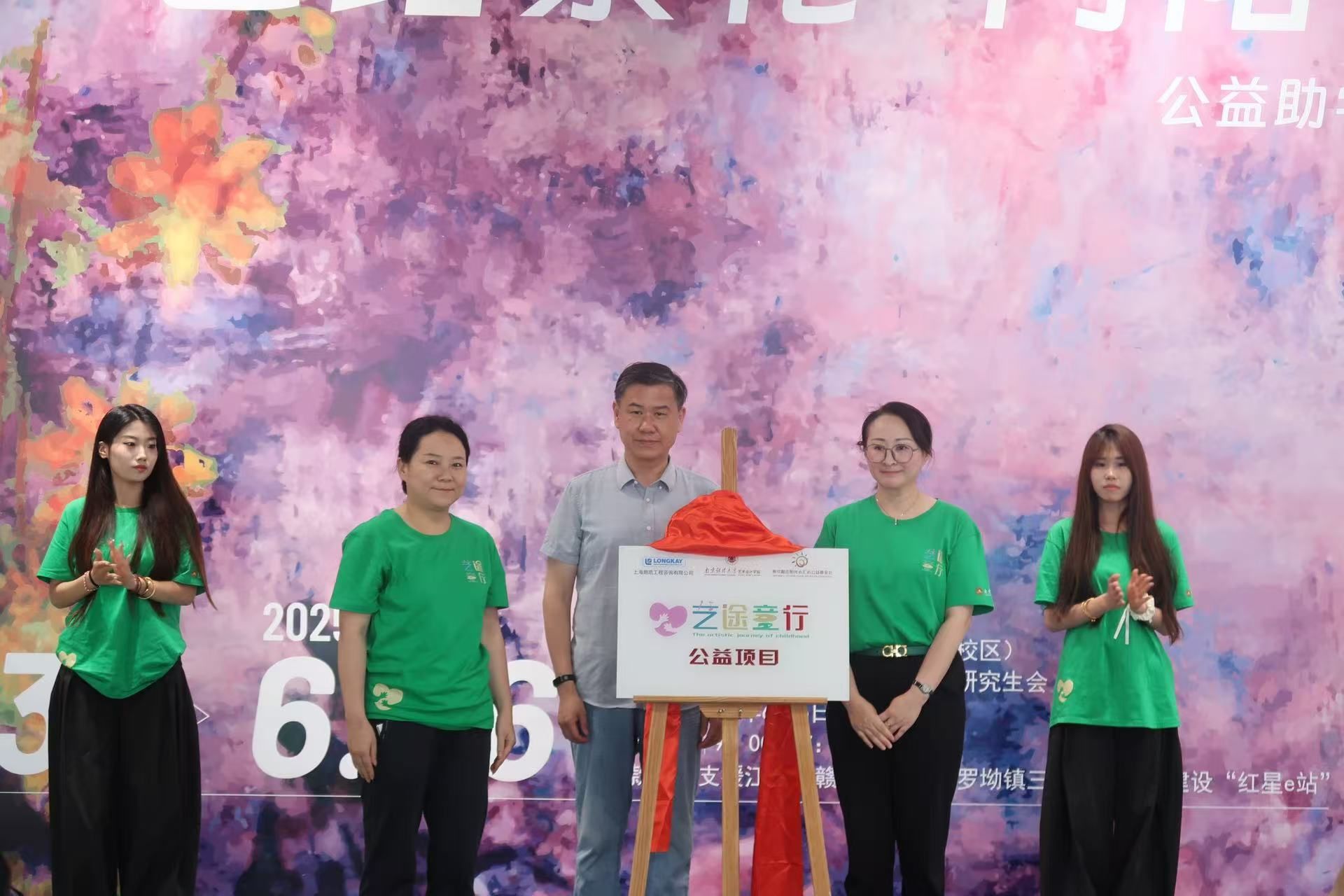 项目揭牌仪式上,“艺途童行”项目资助企业、上海朗凯工程咨询有限公司代表向瑶,南京励志阳光心汇心公益基金会秘书长韦宇群与艺术设计学院党委副书记张荣霞共同为“艺途童行”公益项目揭牌,宣告项目正式启动。随后,支教队志愿者代表深情诵读了受助儿童的感谢信。