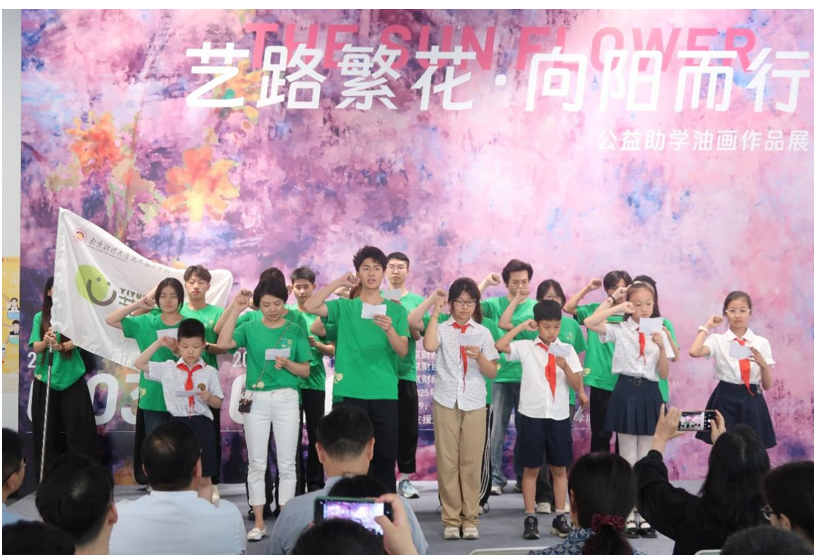 艺术设计学院院长丁蕾宣布“艺路繁花 向阳而行”公益助学油画作品展开幕。活动在全体志愿者共同表演的手语歌舞《最美的光》中圆满落幕。