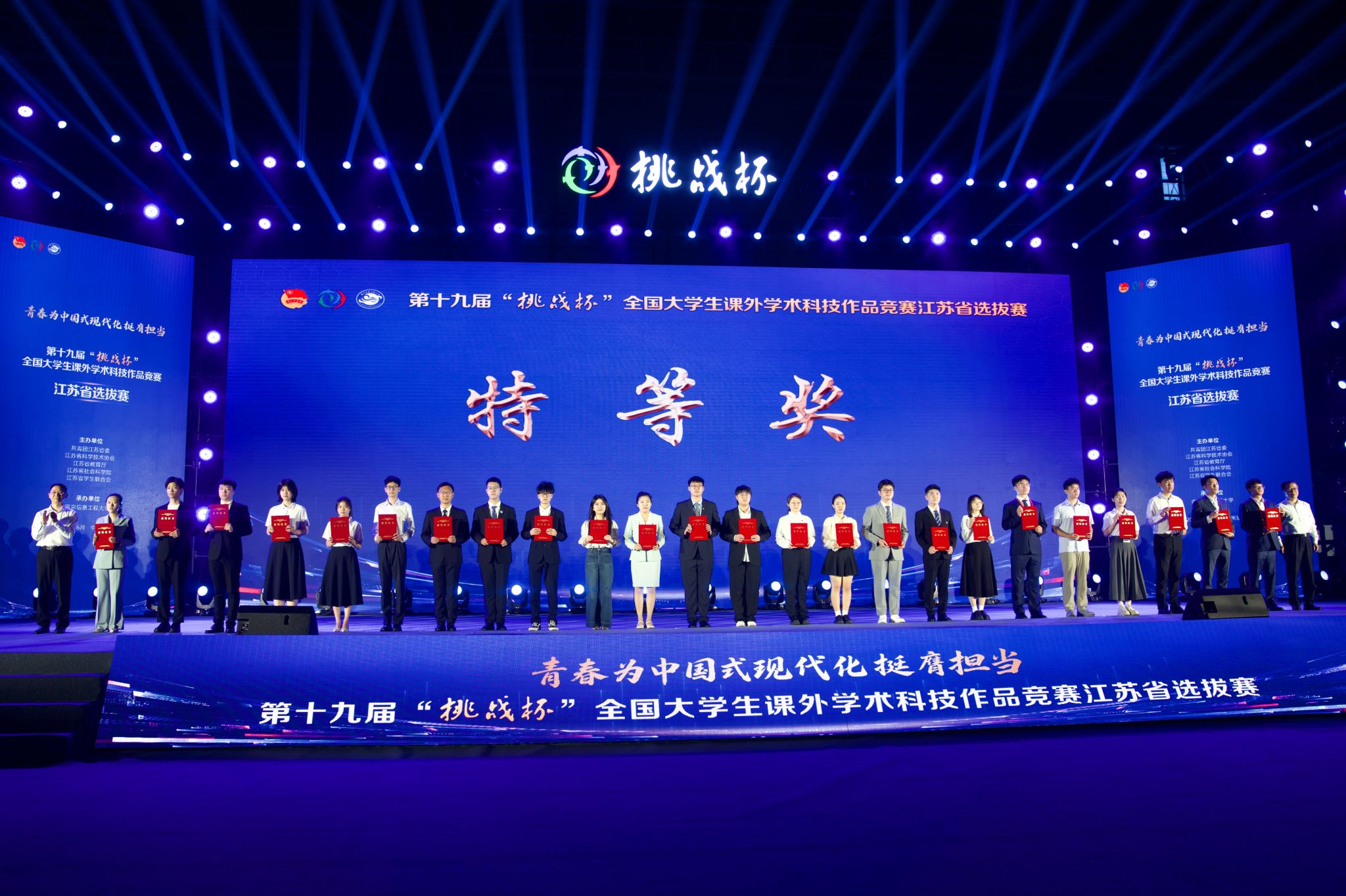 6月7日至9日,第十九届“挑战杯”全国大学生课外学术科技作品竞赛江苏省选拔赛决赛于南京信息工程大学举办。经网评初审、集中复审、现场答辩,伟德官网学子表现优异,脱颖而出,报送的8个项目全部获奖,其中特等奖3项并入围国赛,一等奖1项,伟德官网蝉联“优胜杯”,特等奖获奖数位居全省高校前列,并首次获“科技发明制作”类别最高奖项。