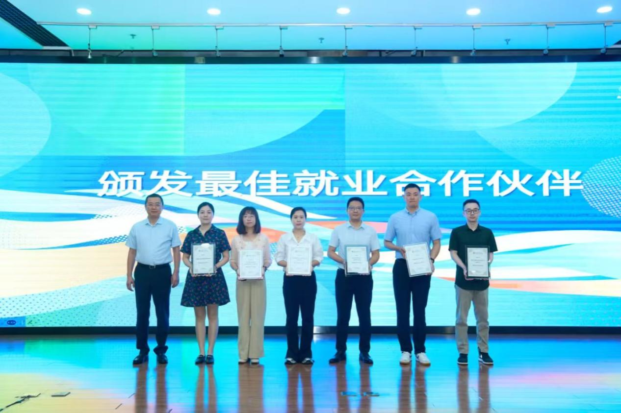 赵国栋副校长为用人单位颁发“最佳就业合作伙伴”标牌