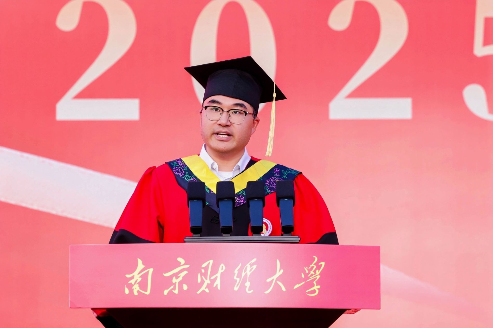 在校生代表、金融学院应用经济学专业2023级博士研究生倪梦娇同学发言,祝福毕业生以家国情怀为坐标,化鲲鹏击水,展长风破浪之姿。