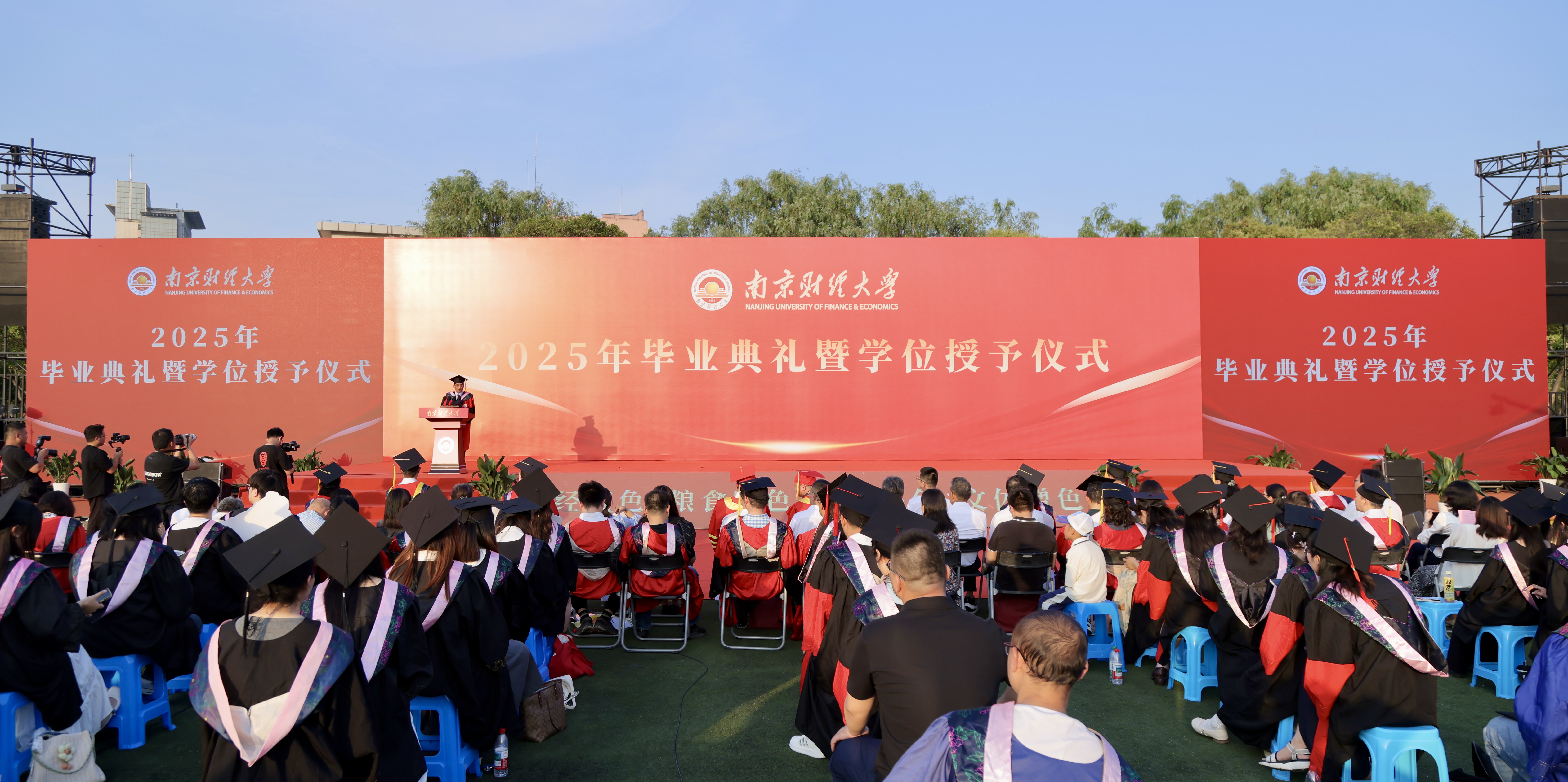 全体毕业生紧握右拳,庄严宣誓。在铿锵有力的毕业誓词和悠扬的《南财大之歌》中,2025届毕业生的青春故事翻开了新的一页。