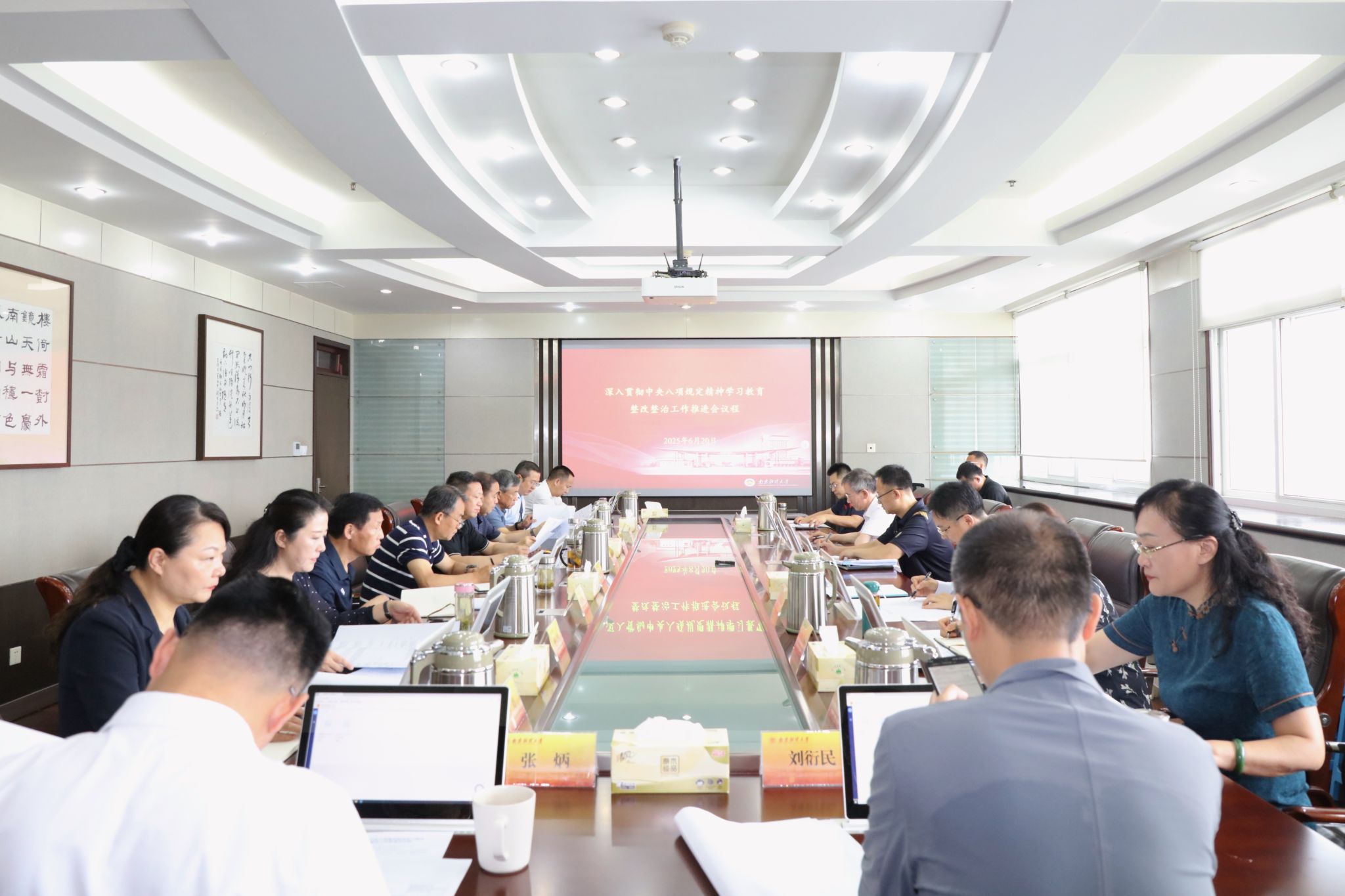 6月20日上午,伟德官网在仙林校区行政楼1009会议室召开深入贯彻中央八项规定精神学习教育整改整治工作推进会。校党委书记张利民主持会议并讲话,全体校领导,深入贯彻中央八项规定精神学习教育工作小组成员及综合组、宣传组、监督检查组、整改整治组组长参加会议。