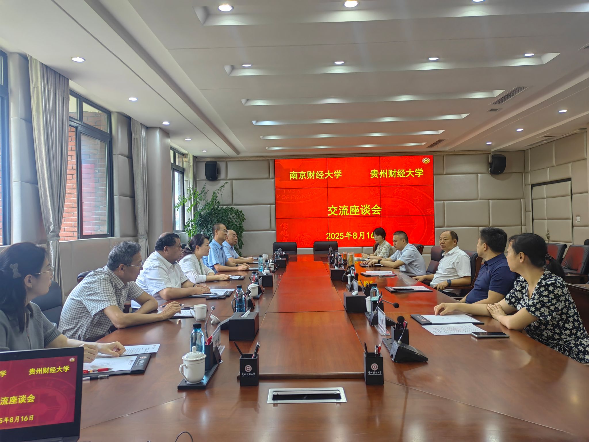 在黔期间,李煜副校长、刘衍民副校长带队到贵州财经大学座谈交流,受到了贵州财经大学党委副书记、校长李汉文热情接待。双方就财经类高校实现立德树人根本任务、服务国家战略需求和社会发展、“十五五”规划编制进行了深入交流。贵州财经大学党委办公室、人事处、教务处和会计学院负责人参加座谈交流。