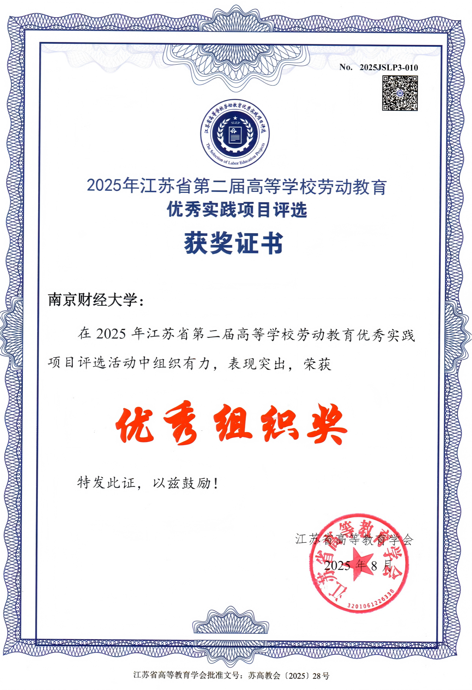 近日,江苏省高等教育学会公布了2025年江苏省第二届高等学校劳动教育优秀实践项目评选结果,伟德官网在本次评选中表现突出,获特等奖1项、一等奖2项,并获优秀组织奖,充分展现了伟德官网在劳动教育领域的工作成效和创新成果。