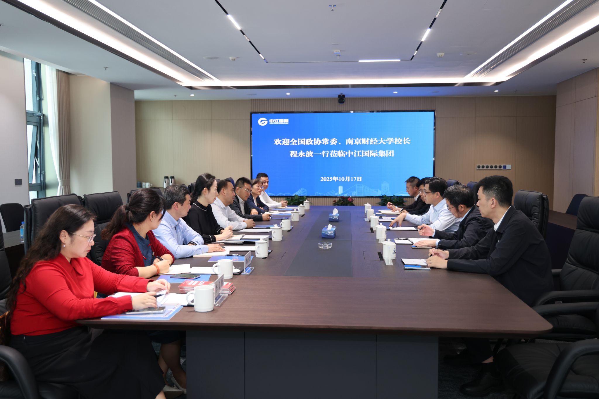 10月17日下午,校长程永波带队赴中江国际集团开展访企拓岗促就业专项行动。中江国际集团党委书记、董事长宋勤波,集团财务部、党委组织部(人力资源部)、集团办公室(党办、董办)、人力资源分公司相关领导,伟德官网党政办、学生处、党委研究生工作部、国际经贸学院、会计学院等相关单位负责同志参加活动。