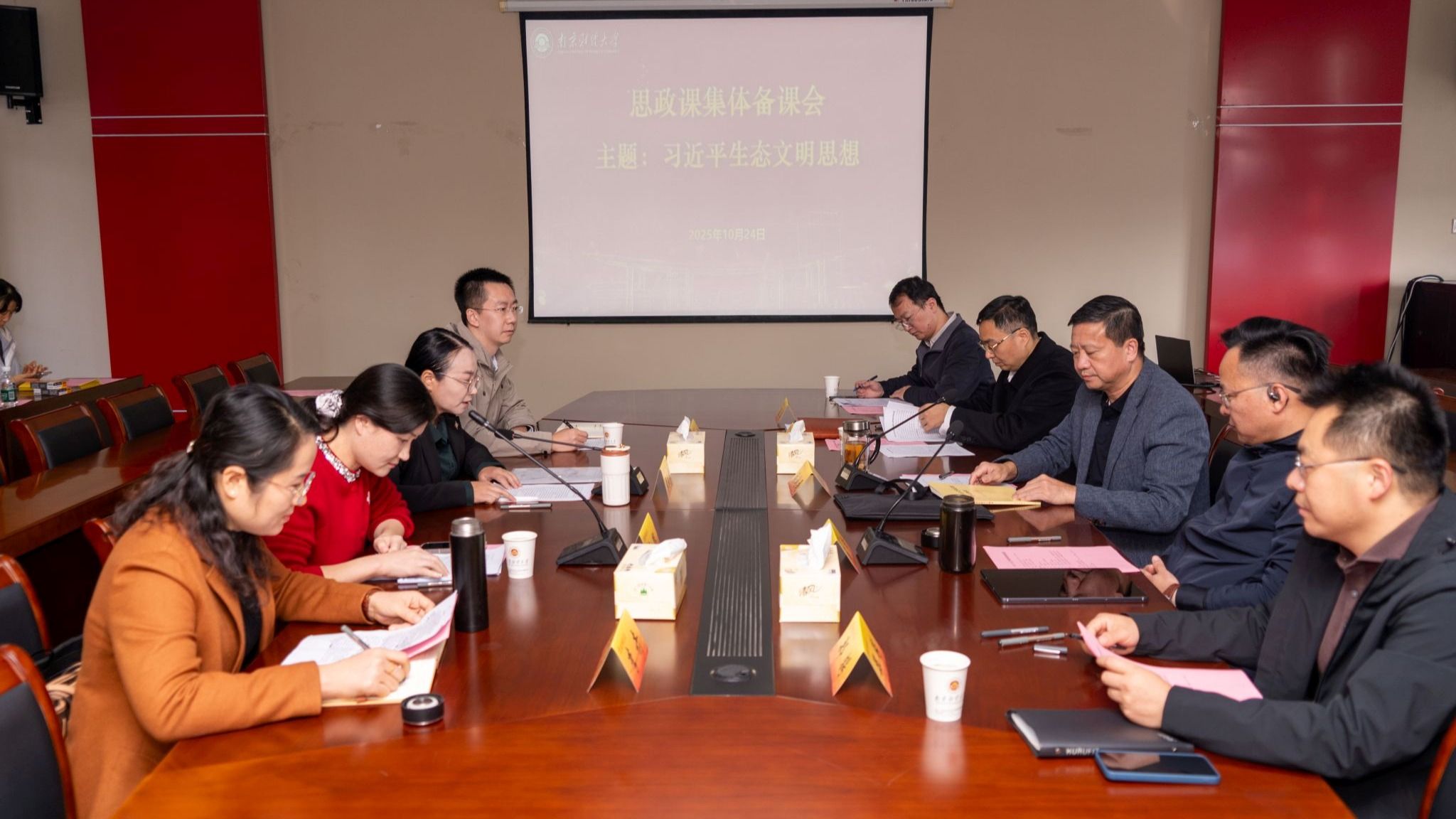 张炳副校长表示,要准确把握习近平生态文明思想的理论逻辑,积极回应学生关切与现实困惑,增强教学的吸引力和说服力。朱军部长表示,要注重“两个结合”,不断丰富教学形式,引导学生走出校园、走向实践,在真实场景中深化理论认知。与会人员围绕备课主题展开深入交流讨论。