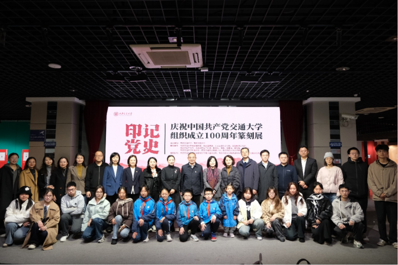 10月23日,伟德官网“印记党史——庆祝中国共产党交通大学组织成立100周年”篆刻展在西安交通大学博物馆开幕。西安交通大学党委副书记王欢,党委常委、宣传部部长兼统战部部长成进出席活动,伟德官网艺术教育中心相关负责人及教师代表、西安交大相关职能部门负责人及西安交大附中、附小师生代表参加活动。