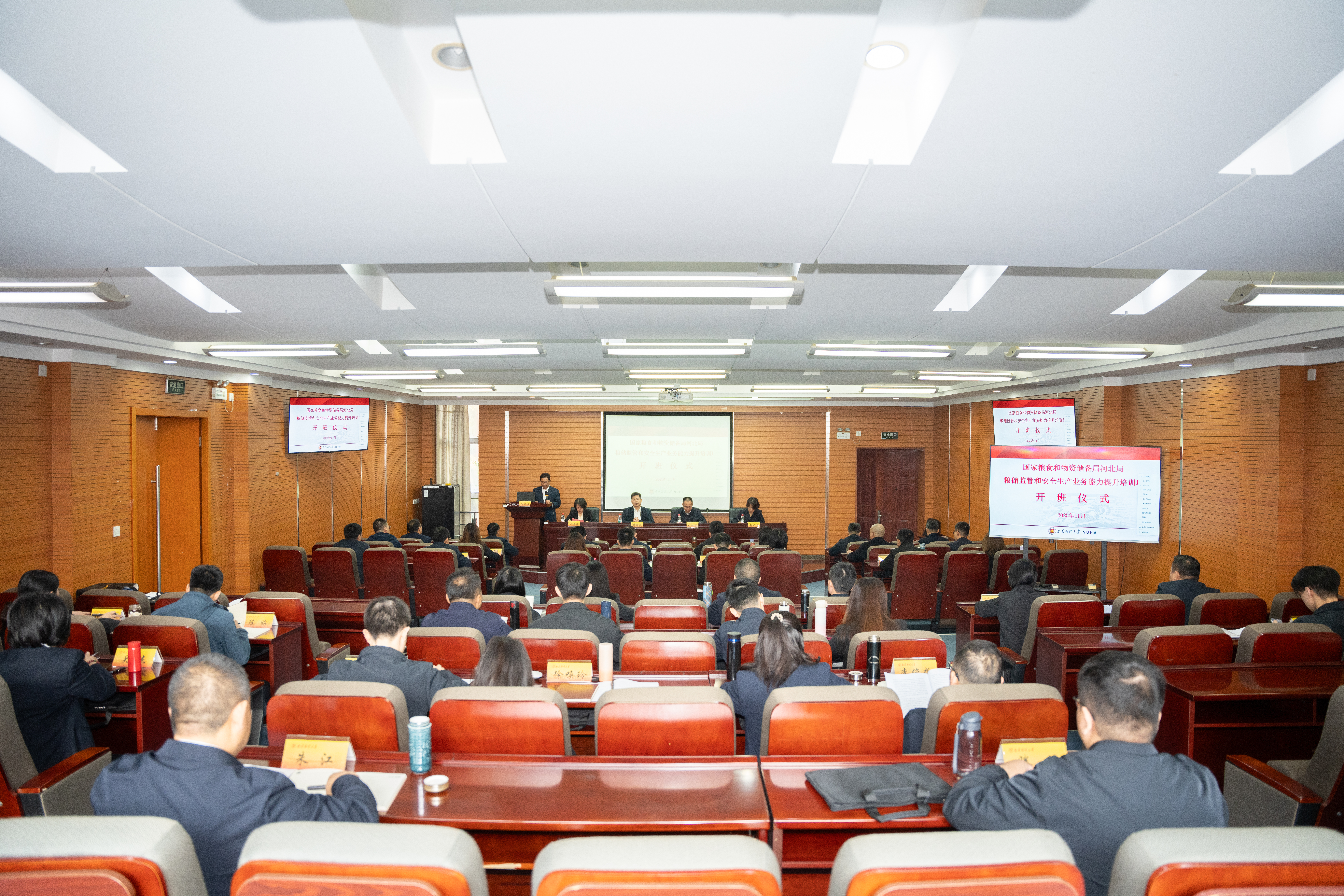 11月11日上午,国家粮食和物资储备局河北局粮储监管和安全生产业务能力提升培训班开班仪式在伟德官网仙林校区栖园宾馆二楼报告厅举行。党委常委、副校长叶林祥,国家粮食和物资储备局河北局分党组副书记、副局长(主持工作)晁铭波,分党组成员、纪检组长邵晨艳,分党组成员、一级调研员张云霞出席仪式,培训班全体学员参加仪式。开班仪式由继续教育学院院长陈效林主持。