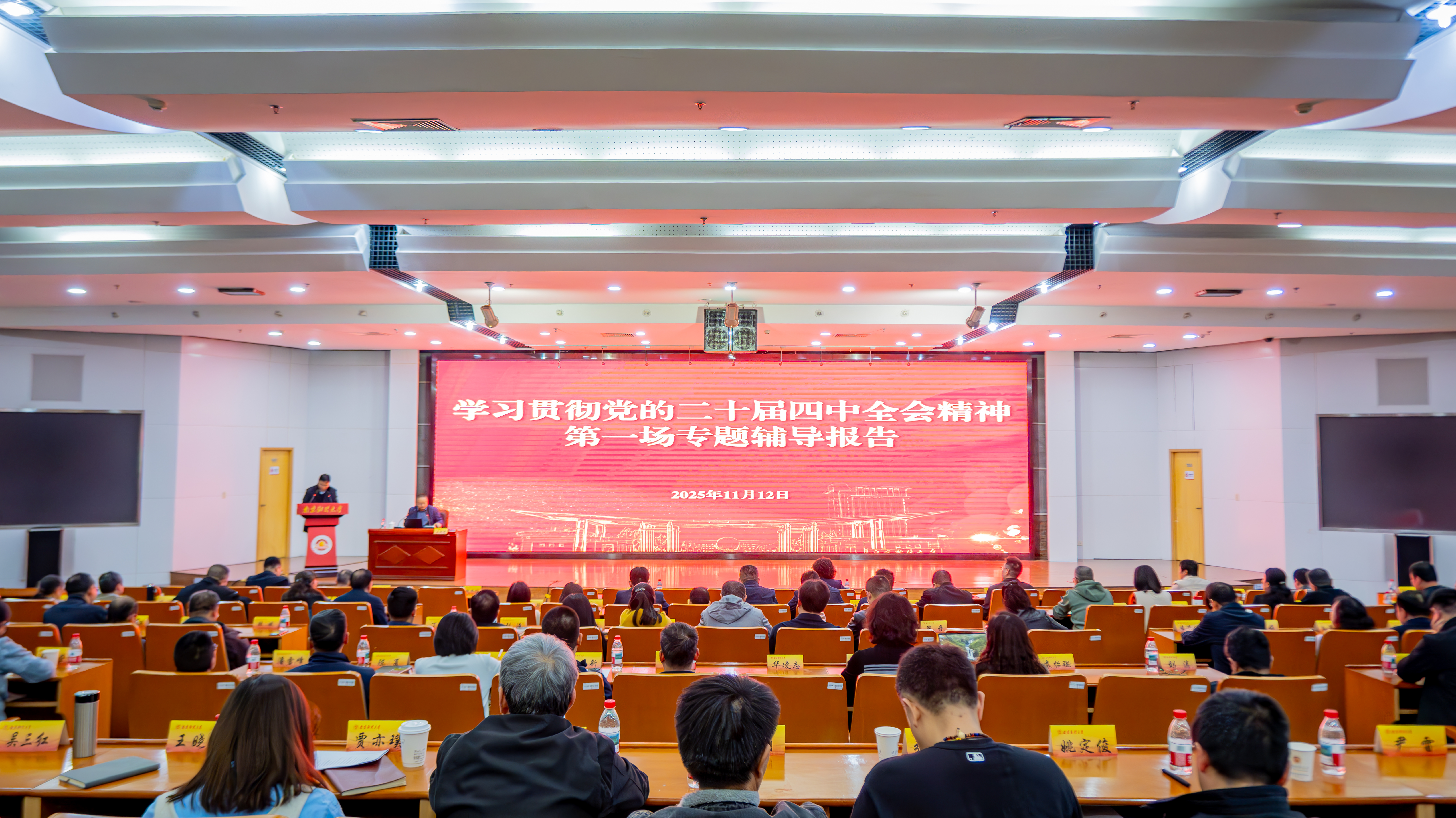 报告会上,王敏光教授以“深入学习贯彻党的二十届四中全会精神——向着中国式现代化的宏伟目标阔步前行、接续奋斗”为题展开宣讲。王敏光教授着重围绕深入领会党的二十届四中全会的重大意义、关照回溯党的历届四中全会的演进及逻辑、全面理解党的二十届四中全会的目标原则、系统把握党的二十届四中全会的战略要点等四个方面,结合我国经济社会发展实际情况及“十五五”时期重点任务部署,对党的二十届四中全会精神进行了全面系统阐述和深入解读。他聚焦党的二十届四中全会的胜利召开,以“善弈者谋事,善谋者致远”开篇,深入探讨党的二十届四中全会的系列关键词及背后逻辑,回溯历届四中全会的历史主线,深刻理解“十五五”规划建议部署的十二项重点任务、突出亮点以及核心要义。