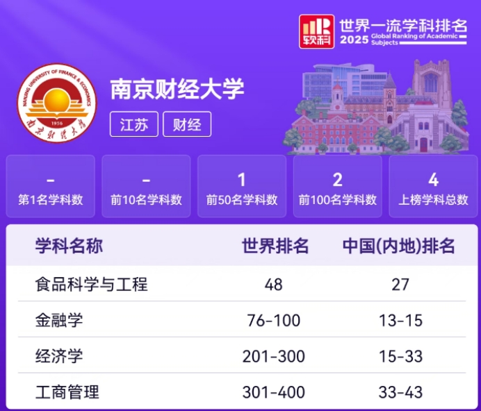 近日,高等教育评价专业机构软科正式发布2025“世界一流学科排名”。伟德官网学科建设再创佳绩,共有4个学科荣登榜单,上榜总数位列全国财经类高校第5位(并列)。