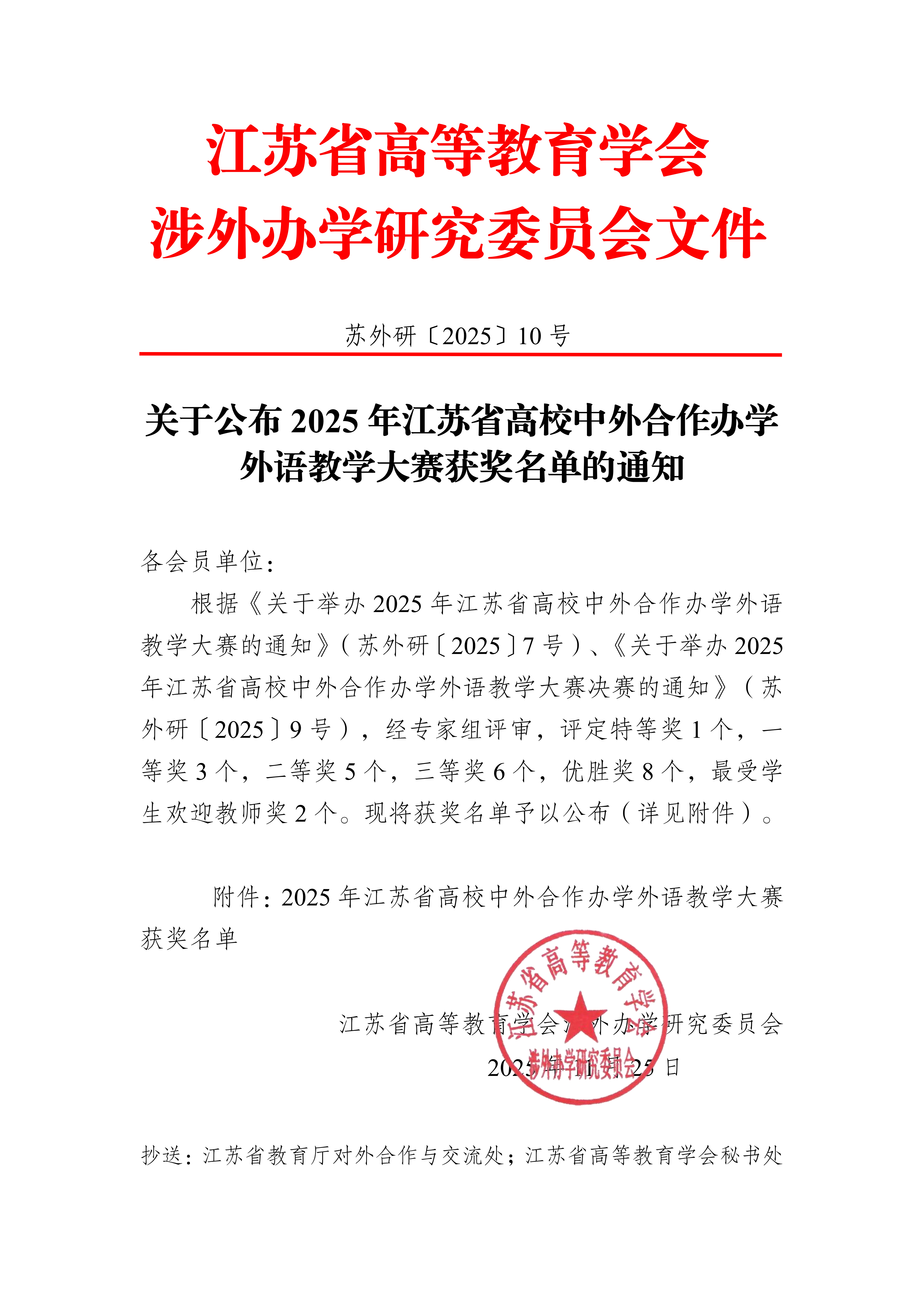 伟德官网教师在江苏省高校中外合作办学外语教学大赛中获一等奖