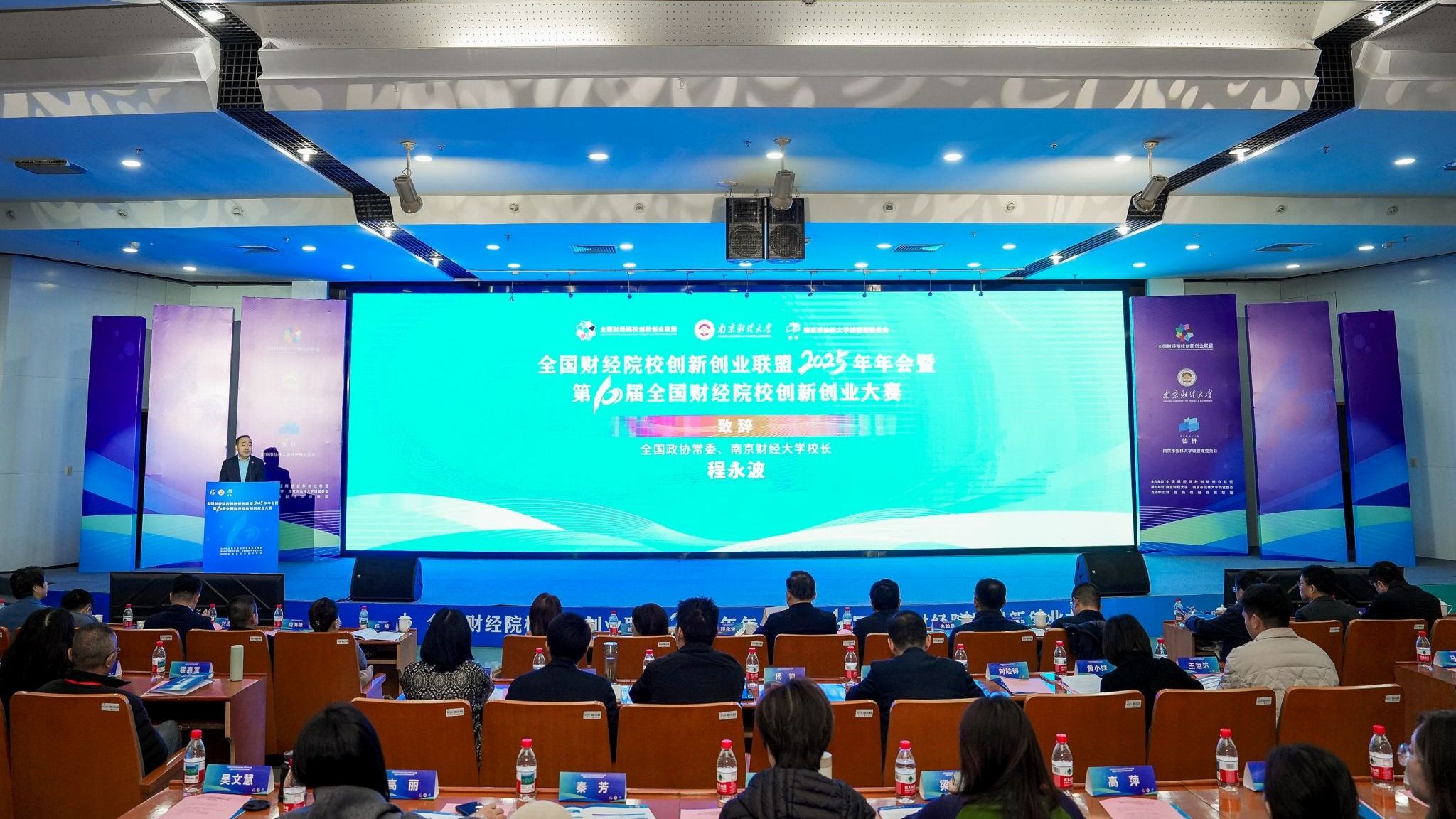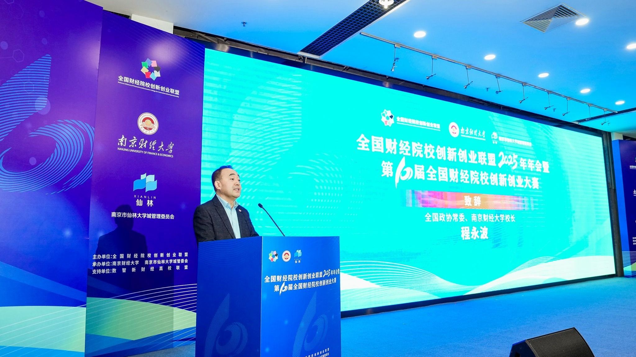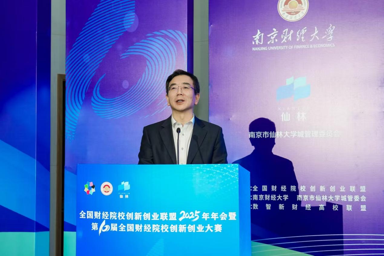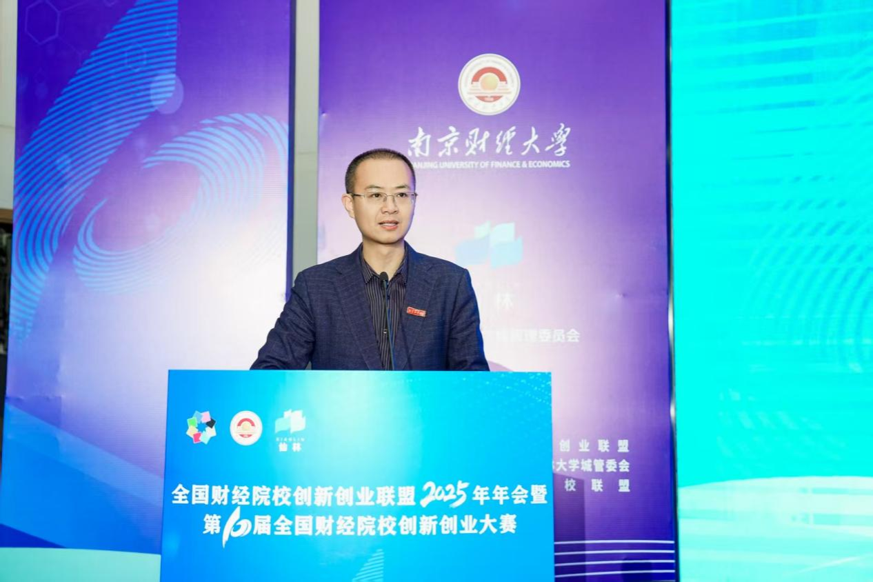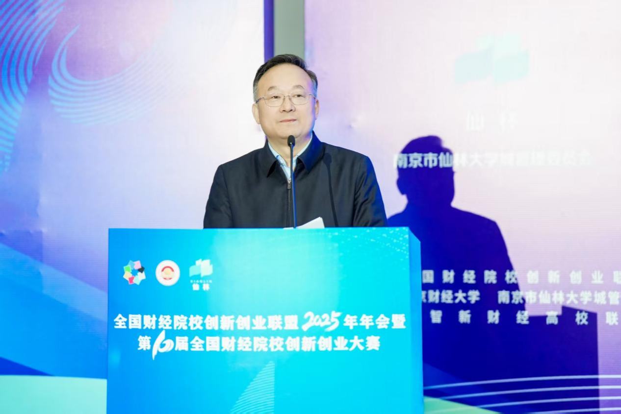 11月28日,全国财经院校创新创业联盟2025年年会暨第十届全国财经院校创新创业大赛决赛在伟德官网仙林校区举办。江苏省教育厅副厅长、党组成员杨树兵,南京市栖霞区人民政府区长、南京经济技术开发区管委会主任、仙林大学城管委会主任王承江,栖霞区人民政府副区长朱翰墨,全国政协常委、伟德官网校长程永波,上海财经大学党委常委、副校长姚玲珍,内蒙古财经大学党委常委、副校长赵国年,东北财经大学党委常委、副校长施锦芳,吉林财经大学党委常委、副校长杨楠,江西财经大学党委常委、副校长贺丹君,西南财经大学党委副书记明海峰,浙江财经大学党委常委、副校长董进才,栖霞区政府办、科技局、人才工作局、高校发展局相关负责人,来自中央财经大学、上海财经大学等46所高校的350余名师生参加会议和决赛。开幕式由伟德官网党委常委、副校长刘衍民主持。