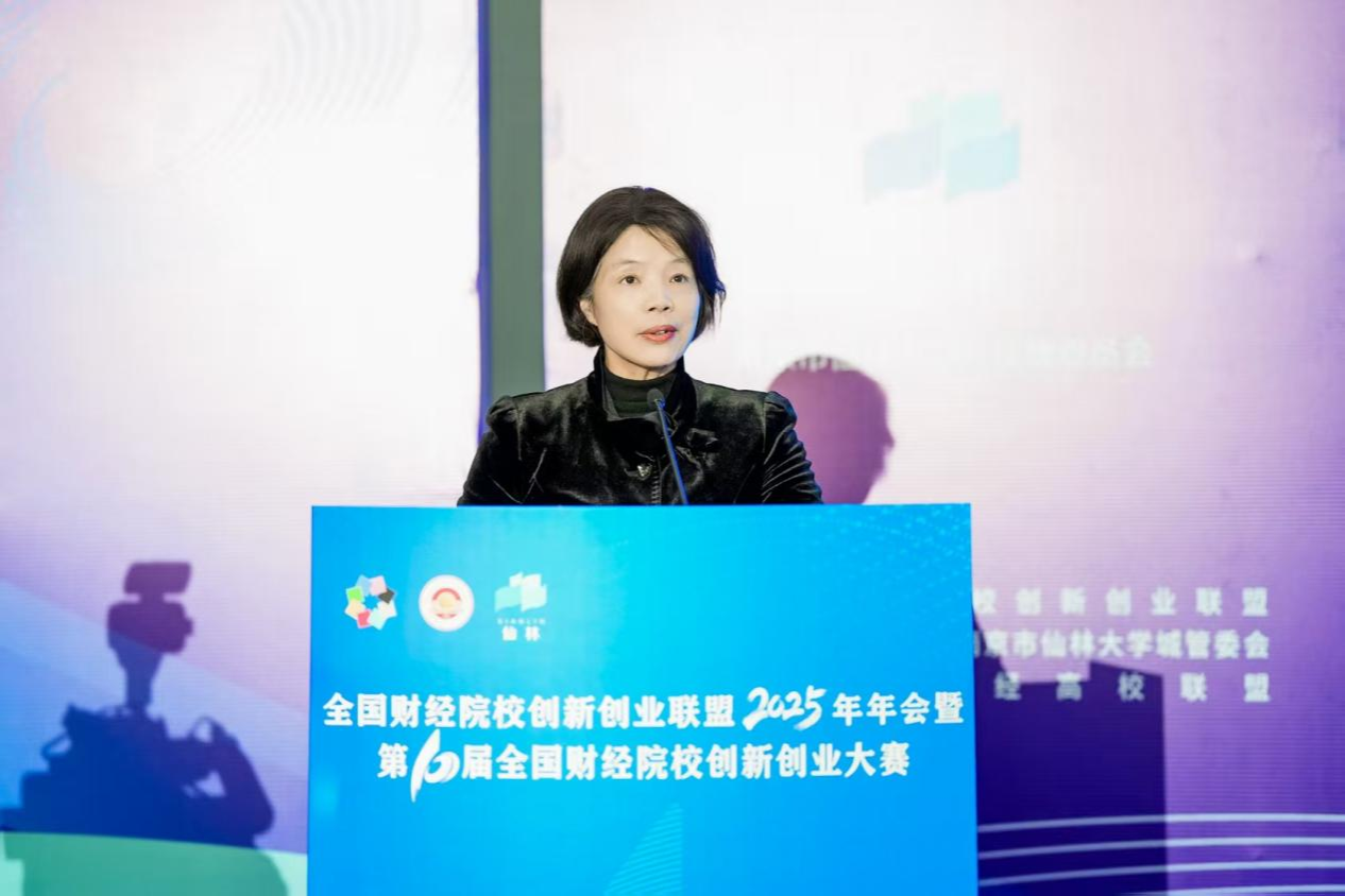 姚玲珍副校长代表全国财经院校创新创业联盟理事长单位对各位嘉宾和师生的到来表示热烈欢迎,并对学校承办本次会议的辛勤付出表示感谢。她强调,本次年会暨大赛是贯彻党的二十届四中全会精神、对接新质生产力发展需求的关键举措;回顾联盟十年发展,从20余家单位成长为覆盖65所财经高校的协作网络,赛事成果丰硕,实现了财经院校“双创”教育从分散探索到协同发展的跨越。历经十年发展,“双创”教育已从初期的实践摸索迈向高质量发展新阶段,成为深化财经教育改革的关键突破口、数智新财经人才培养的重要抓手、高等教育国际化的战略先手。
