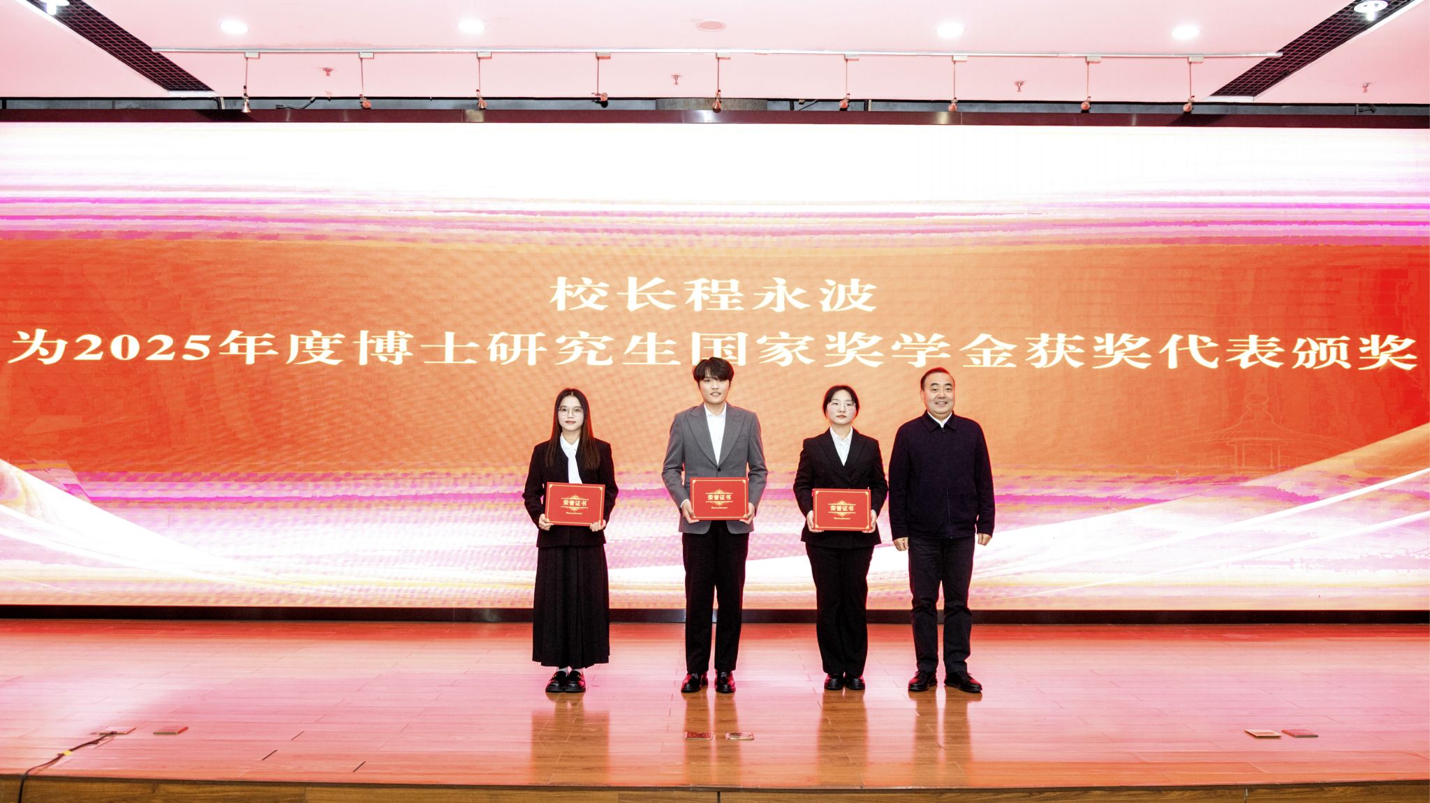 程永波校长为2025年度博士研究生国家奖学金获奖代表颁奖