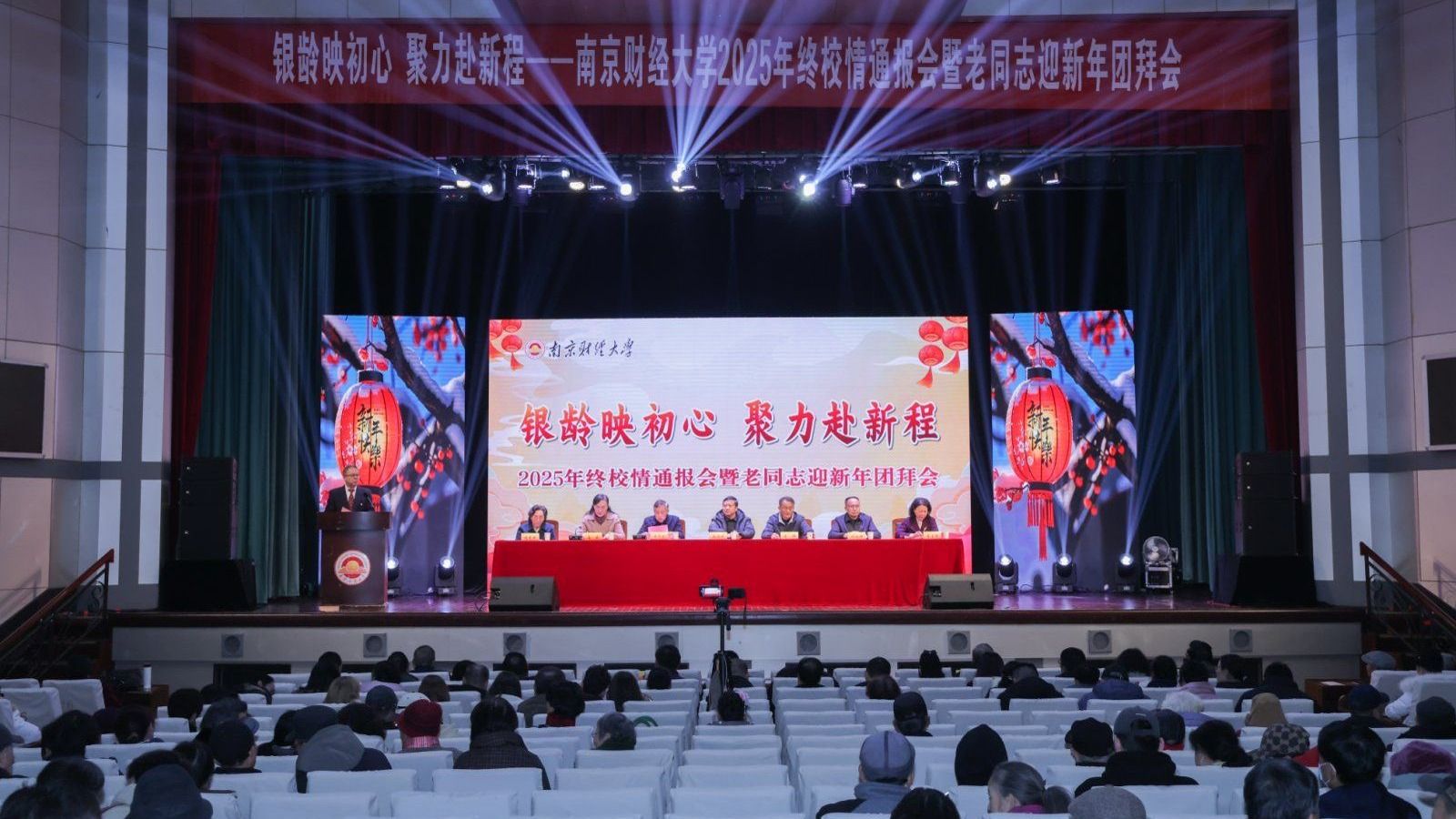 时序更替,华章日新。12月16日下午,“银龄映初心 聚力赴新程”2025年终校情通报会暨老同志迎新年团拜会在福建路校区大礼堂召开。校党委书记张利民,校党委副书记李群,党委常委、副校长黄步龙,党委常委、副校长叶林祥,党委常委、组织部部长吕戎,党委常委、统战部部长李玉琴,副校级老领导程光熙、周玉林、汤曙东等出席会议。离退休工作小组成员单位主要负责人、离退休工作联络员与500余名老同志欢聚一堂,共忆峥嵘岁月,共话学校发展。年终校情通报会由离退休党委书记杨玉中主持。