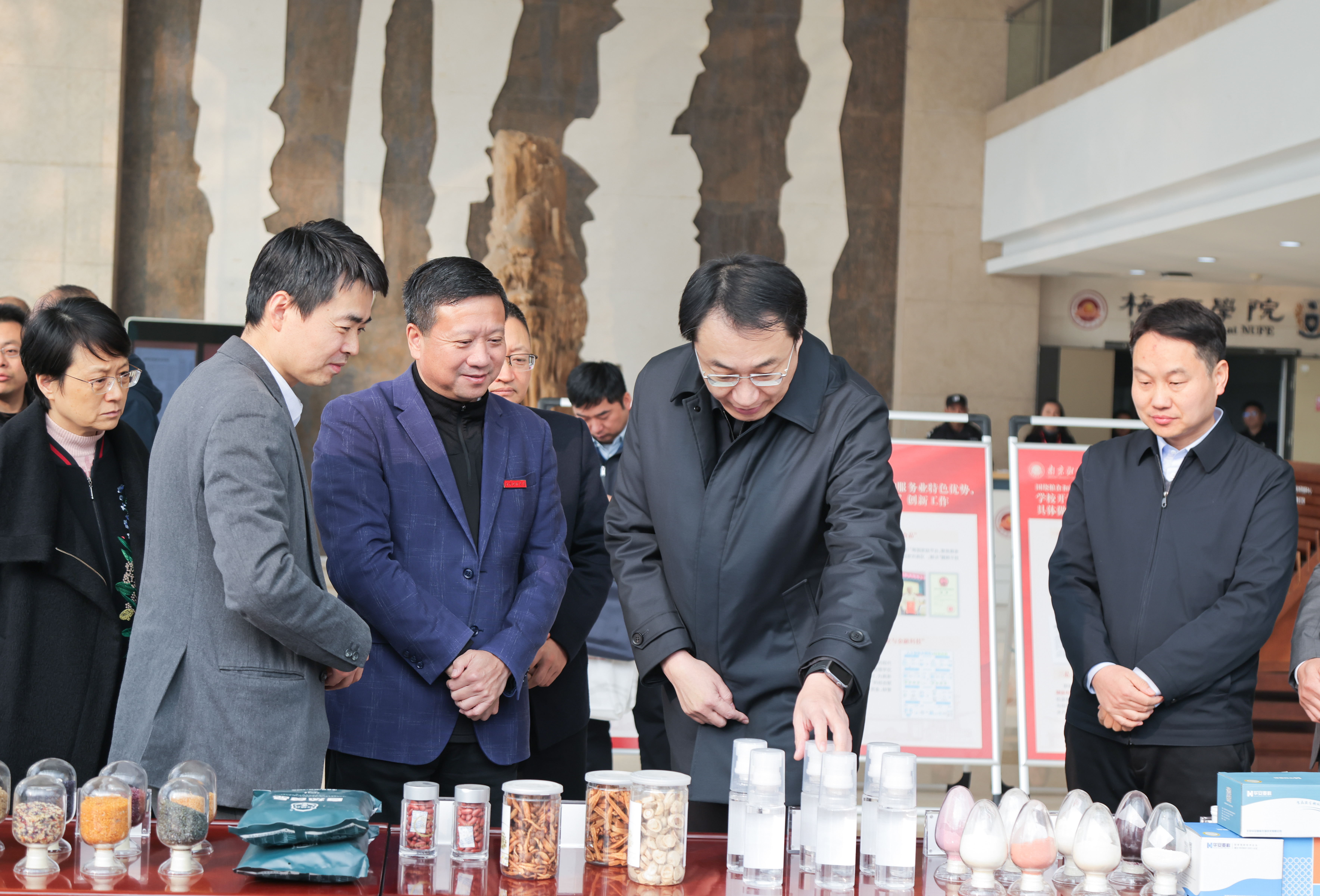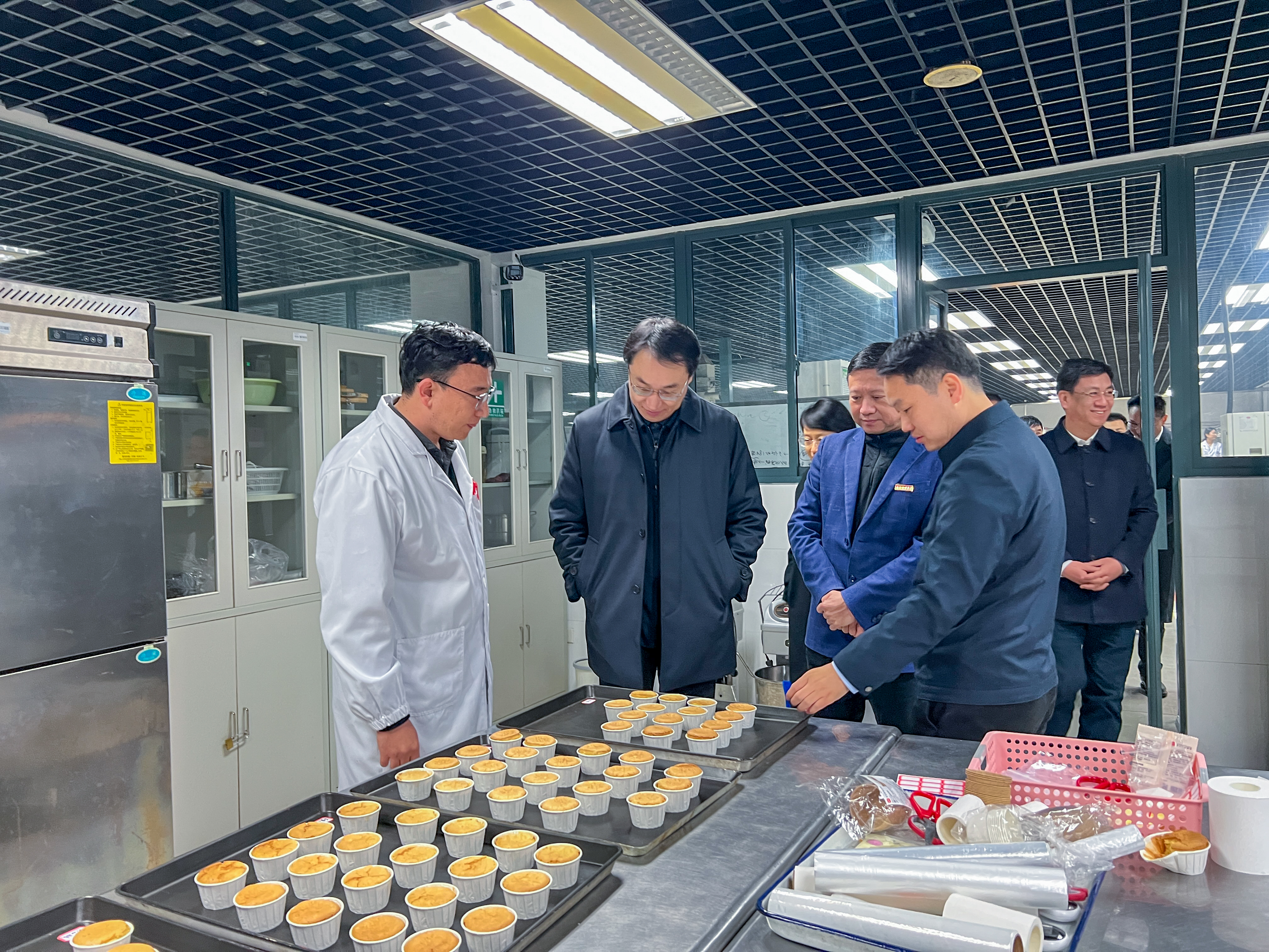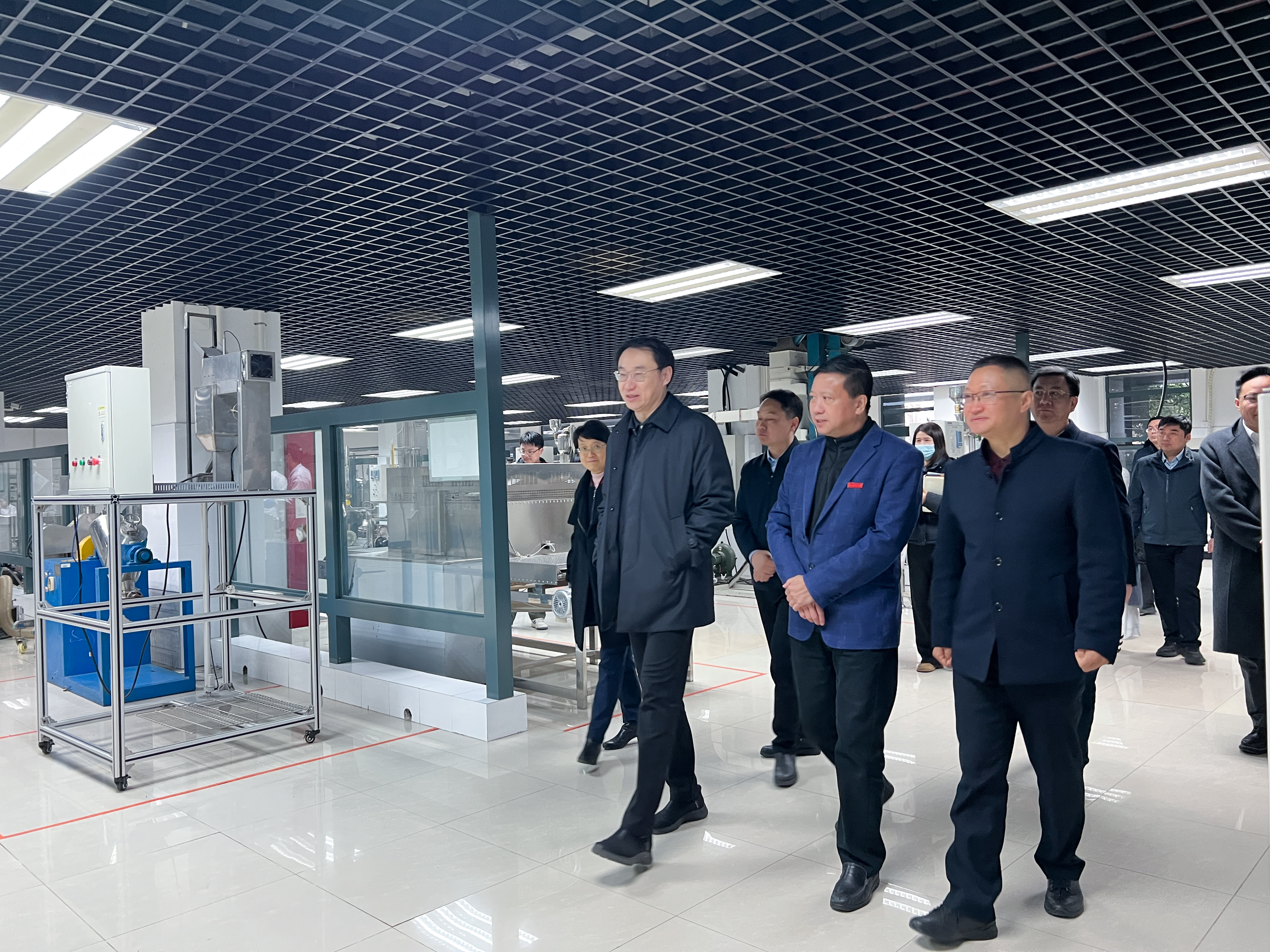 在食品科学与工程学院,赵岩副省长一行重点考察了粮食储运国家工程实验室、粮食质量安全与营养健康国家级重点实验室培育建设点,现场观看了粮食数智鲜储系统、VR粮安培训系统、储粮害虫智慧监测与绿色防控集成技术等成果展示,并听取学校“双高协同”与科技成果转化、科研平台建设、实验室安全管理等工作汇报。赵岩副省长与正在进行实验操作的师生交流,详细了解科技成果产出情况,勉励大家瞄准国家战略导向和行业发展需求,勇担时代重任、勇攀科技高峰,围绕粮食科技创新,持续提升科技成果转化率。赵岩副省长对学校创新开展“双高协同”的工作成效表示肯定,强调“双高协同”是我省打通教育、科技、人才良性循环的关键举措,学校要突出办学特色、深化改革创新,坚持“有组织科研+有组织转化”实施路径,探索构建“五个一”融合发展体系,深化与地方政府、高新技术企业的战略合作,加快构建更加高效的技术转移转化生态体系,推动更多科技成果落地转化、开花结果。
