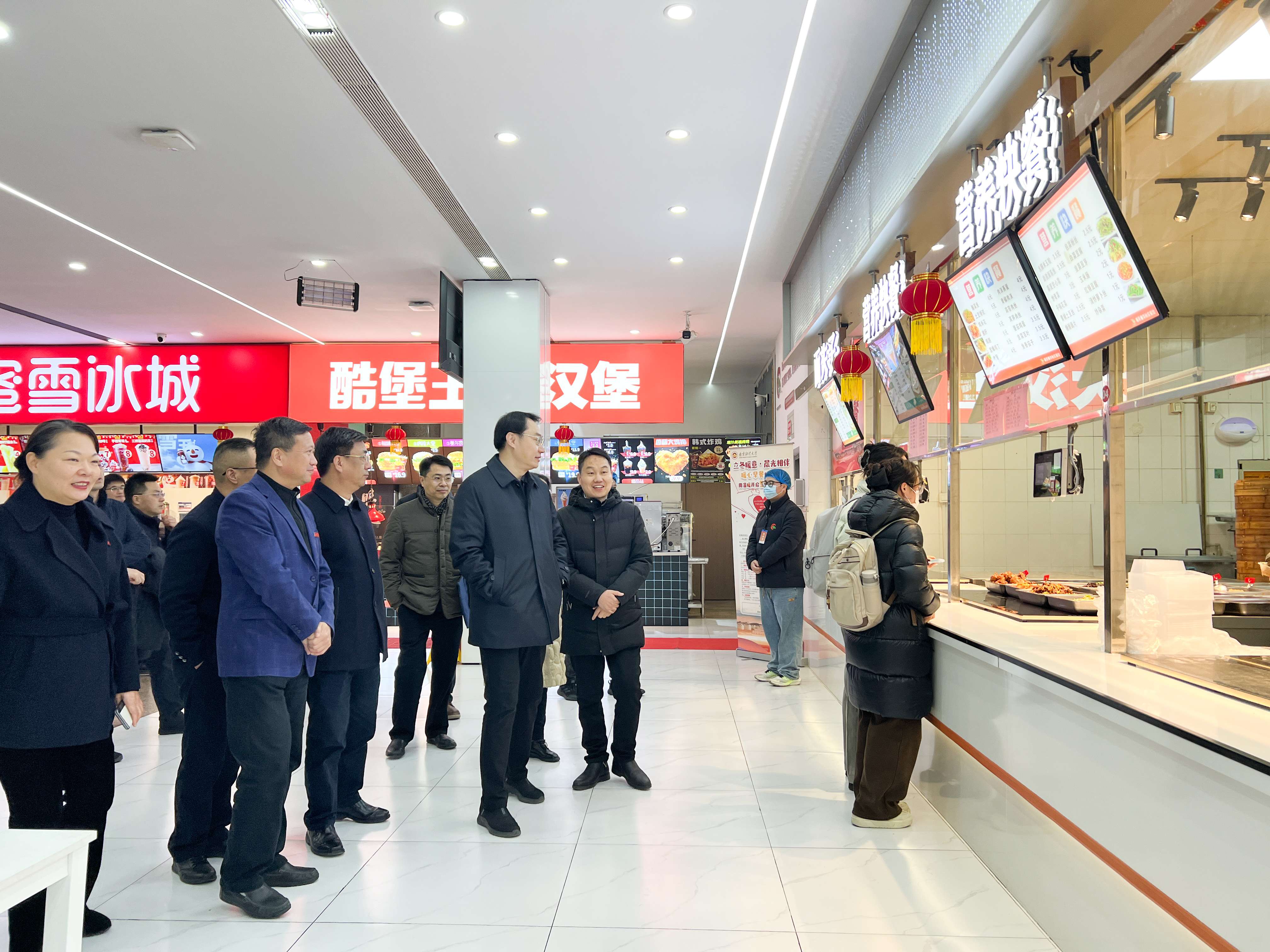 在中苑十餐厅,赵岩副省长深入食堂售卖区、用餐区及后场食材储存、处理区域,详细了解校园食品安全管理体系建设与运行情况,对学校健全的食品安全防控体系表示肯定。赵岩副省长指出,校园食品安全事关师生身体健康与社会和谐稳定,是必须牢牢守住的底线。学校要始终绷紧食品安全这根弦,压实主体责任,优化管理流程,确保各项制度落地见效,坚决守护好师生“舌尖上的安全”,全力营造健康放心的校园餐饮环境。