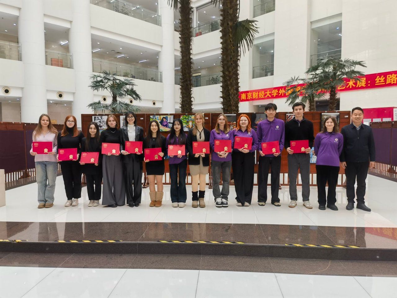 方勇副校长为优秀作品创作者代表颁发荣誉证书,并寄语留学生们:“艺术是跨越国界的语言,文化是沟通心灵的桥梁。希望大家以南财为家,学有所成;以艺术为桥,讲好中国故事,成为兼具专业素养与人文情怀的跨文化使者。”他表示,学校将为留学生搭建更多优质平台,营造更加开放、包容、融合的成长环境。