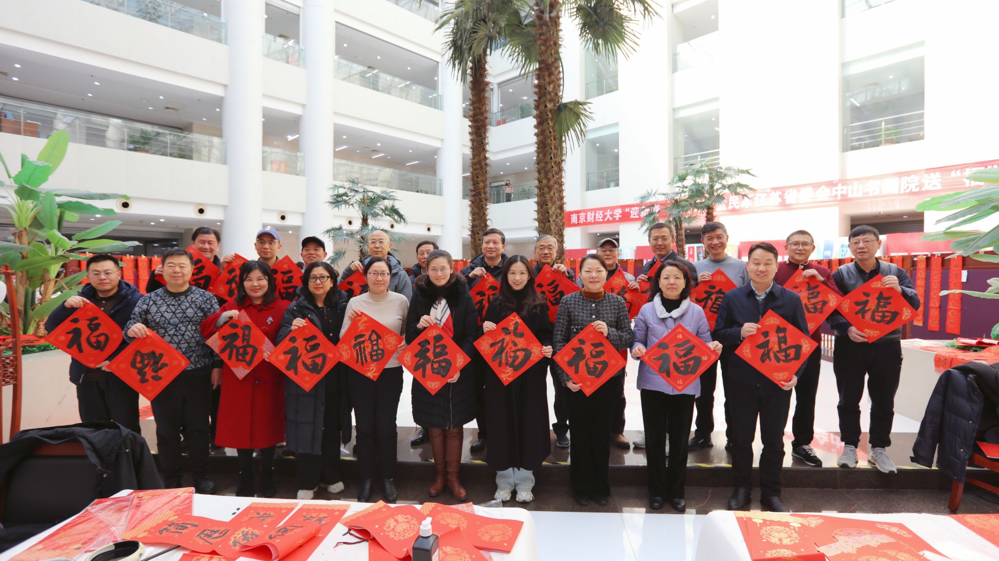 笔墨凝香,情暖冬日。1月7日中午,由校工会、党委统战部、离退休工作处、图书馆联合开展的“墨香迎新春,祝福暖人心”迎新春、送春联活动在仙林校区图书馆二楼大厅举办。校党委书记张利民,校长程永波,党委常委、纪委书记李茜,党委常委、副校长黄步龙、赵国栋、李煜、方勇出席活动。江苏省书法家协会副主席、民革江苏省中山书画院院长、伟德官网艺术设计学院教授仇高驰,中国美术家协会会员、民革江苏省中山书画院副院长李景,中国书协会员、民革江苏省中山书画院常务理事金世斌,中国楹联书法艺术委员会委员、民革江苏省中山书画院理事秦敏杰,中国书协会员、江苏省篆刻研究会理事、民革江苏省中山书画院常务理事王建强,南京博物院著名书画家、国家二级美术师、民革江苏省中山书画院理事范遵荣,以及伟德官网教职工书画摄影协会教师参加活动。