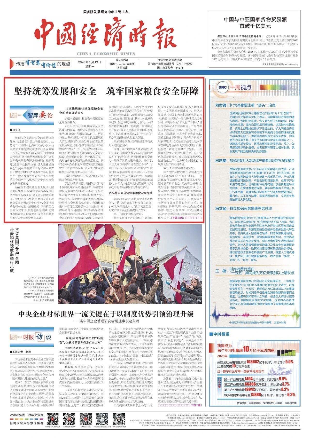 1月19日,《中国经济时报》头版刊发了全国政协常委、校长程永波的署名文章《坚持统筹发展和安全 筑牢国家粮食安全屏障》。