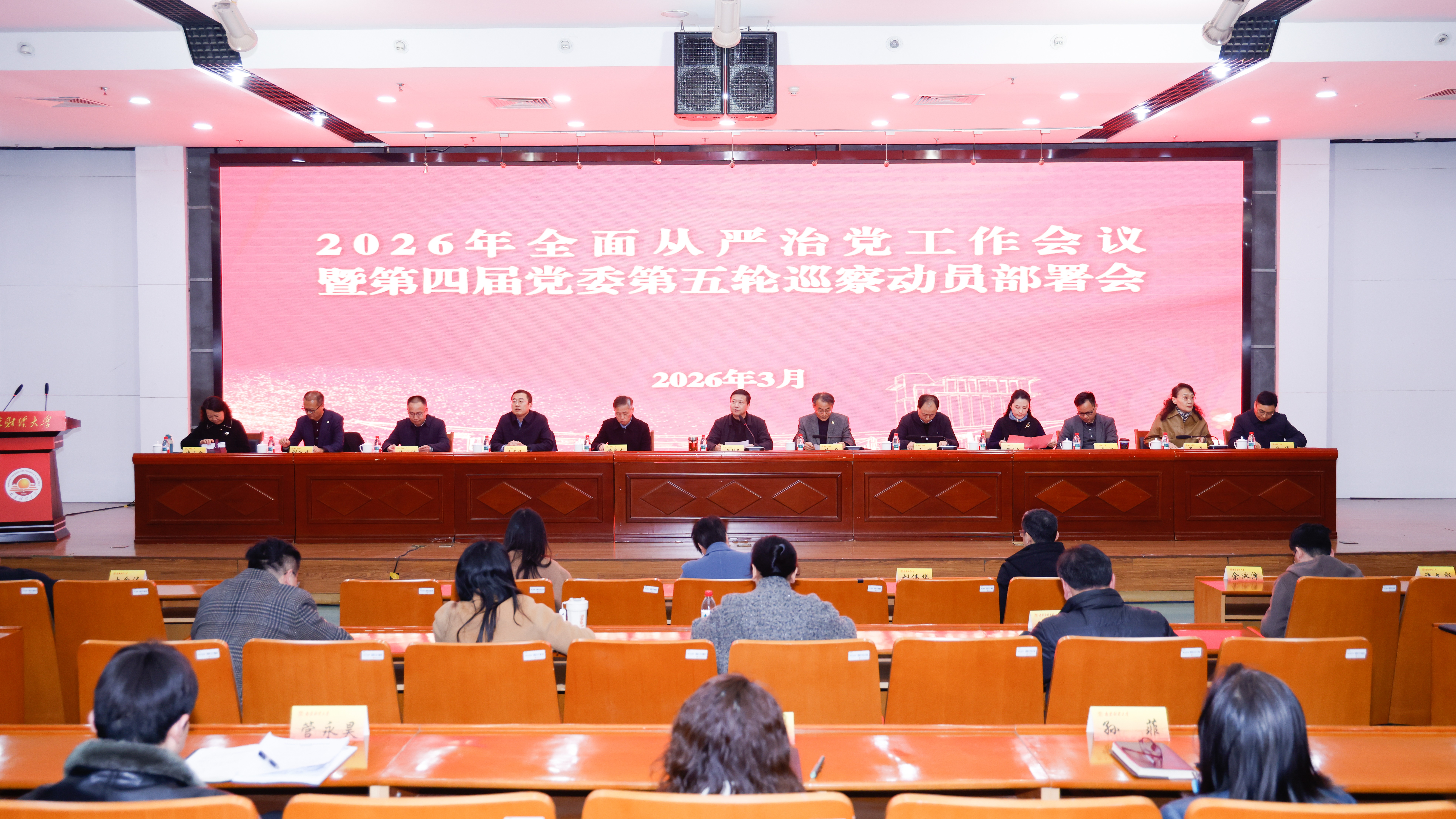 第三,要坚定不移推动学校全面从严治党向纵深发展。一是要加强党的领导,压紧压实责任链条。要坚持以理论武装强引领,把稳政治方向;以实际行动抓贯彻,健全落实机制;以政治监督促落实,压实责任闭环。要进一步深化“纪检巡审督+专项工作”联动机制,以监督实效保障学校各项决策部署落地落实。二是要严明纪律规矩,完善立体监管体系。要聚焦纪检监察机构铁军建设,深入推动“两个责任”的贯通协同,不断深化同题共答、同向发力,合力将全面从严治党嵌入办学治校关键环节。要聚焦发挥巡视巡察利剑作用,精益求精提升巡察质效,提高发现问题层级,深化改革创新,不断增强治理实效。三是要校准价值航向,激发干部干事活力。要以开展树立和践行正确政绩观学习教育为契机,坚决整治政绩观偏差,强化严管约束筑牢底线,强化厚爱激励提振干劲,强化实干导向凝聚合力,引导广大干部以清廉之风、务实之举、奋进之姿,为学校“十五五”高质量发展凝聚更为广泛、更为强劲的奋斗力量。
