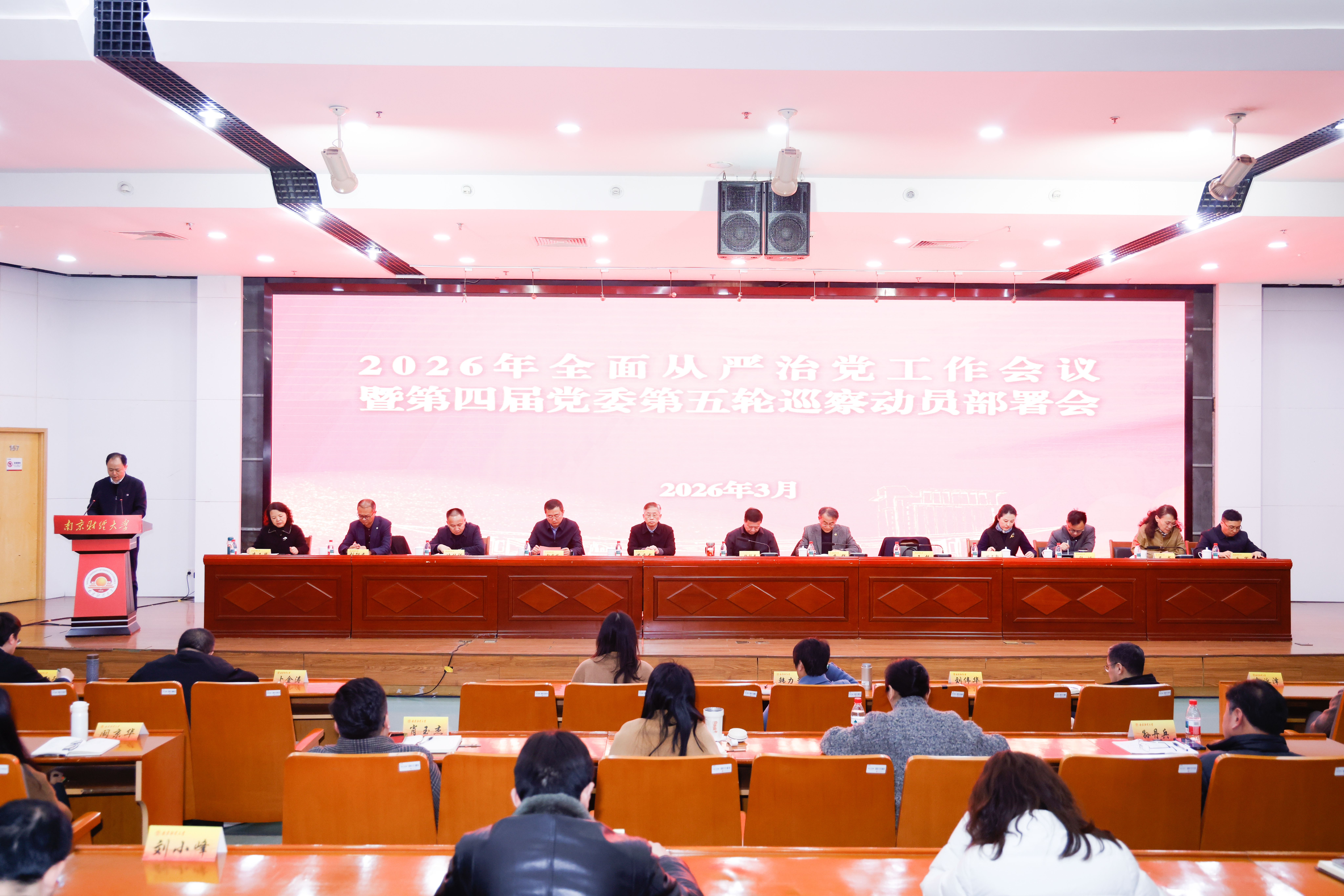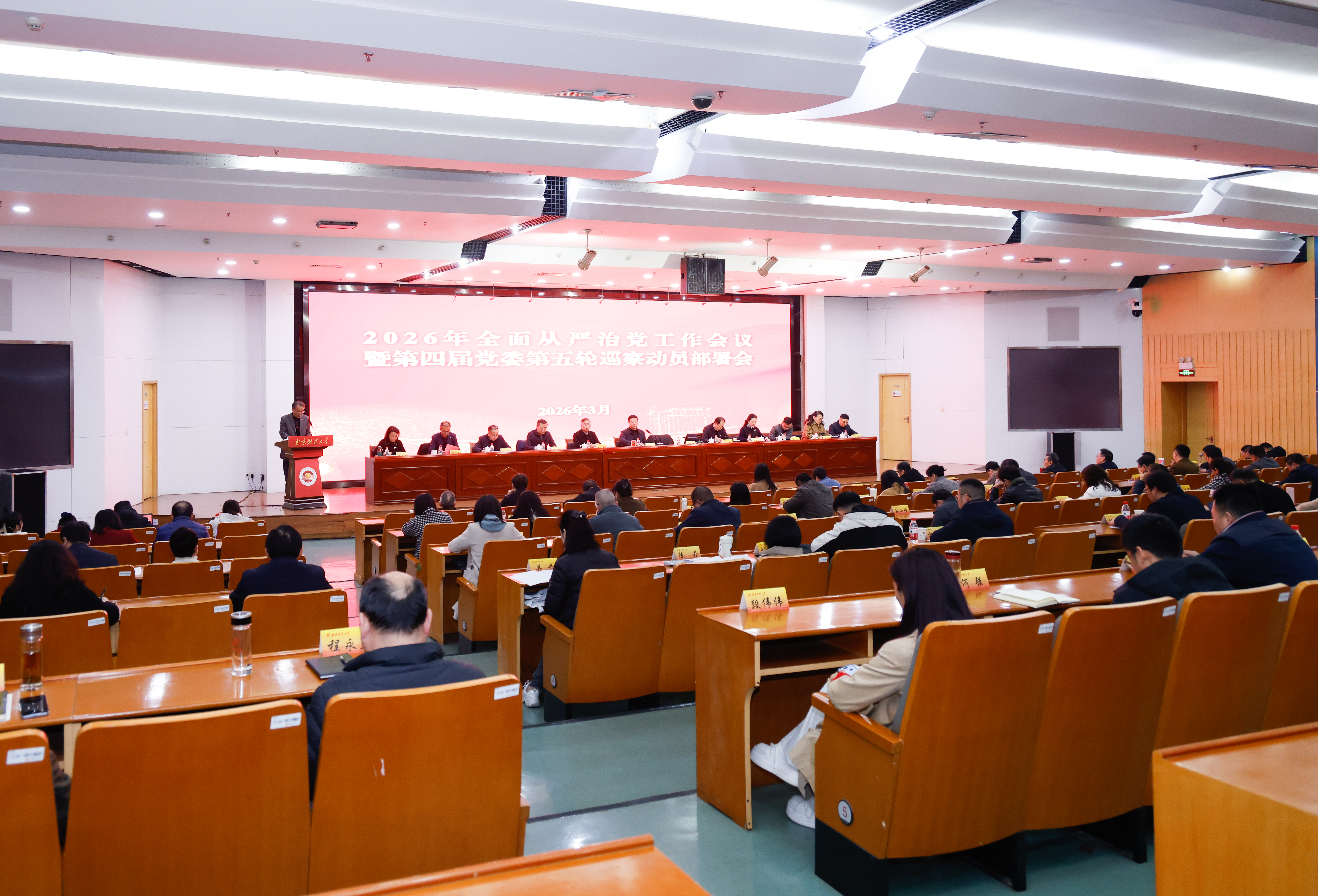 3月20日下午,伟德官网2026年全面从严治党工作会议暨第四届党委第五轮巡察动员部署会在仙林校区图书馆一楼报告厅召开。全体在校校领导,全体党委委员、纪委委员,全体中层正职干部(含主持工作的副职),资产经营有限公司主要负责人,特约监察员代表和第四届党委第五轮巡察工作组全体成员参加会议。会议由校党委书记张利民主持。