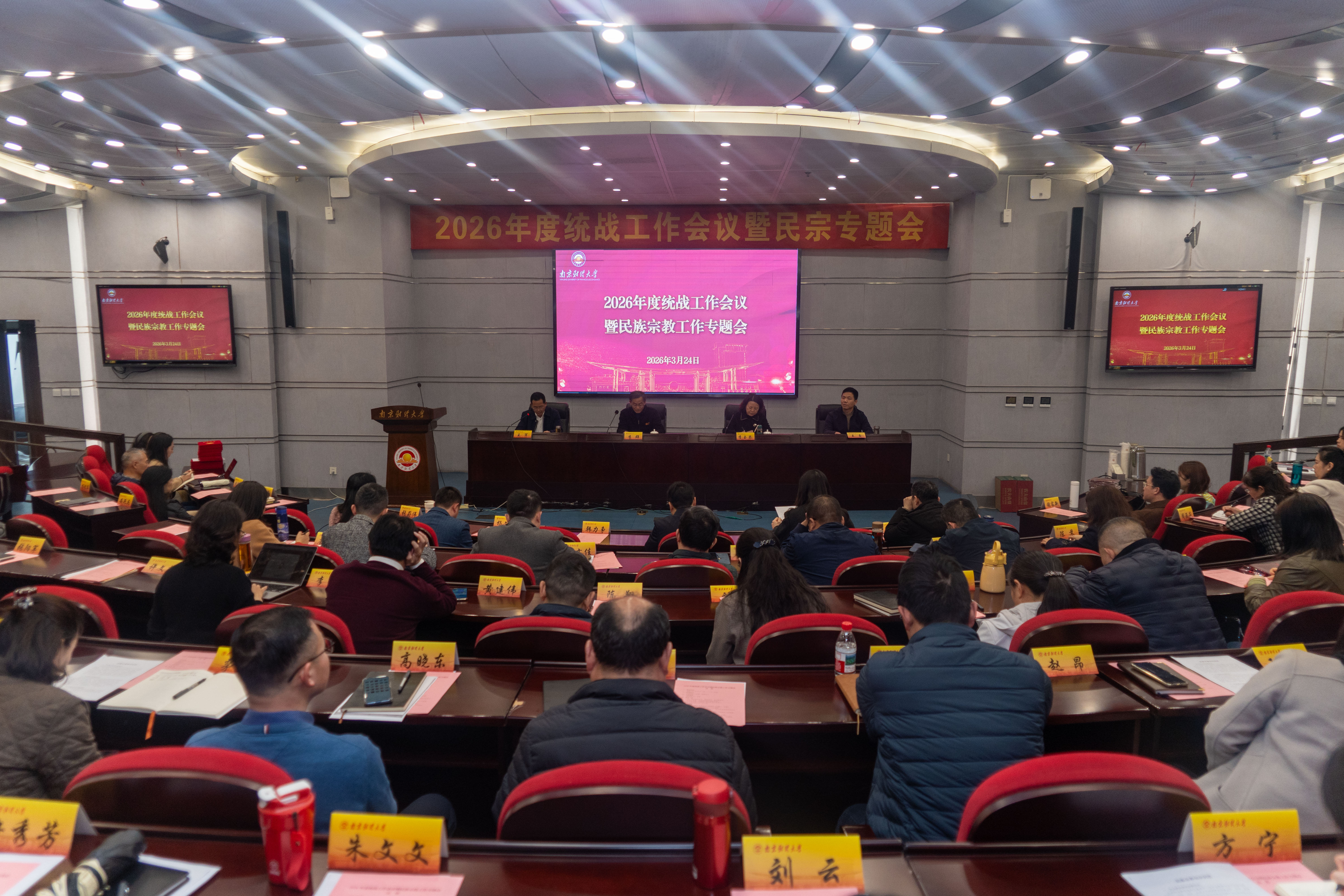 3月25日下午,伟德官网在仙林校区行政楼二楼报告厅召开2026年度统战工作会议。校党委副书记李群,党委常委、统战部部长李玉琴,党委常委、宣传部部长朱军出席会议,各二级党组织书记、统战委员、统战联络员,各民主党派基层组织、统战团体负责人,校民宗工作领导小组成员单位负责人及党委统战部全体工作人员参加会议。会议由党委统战部副部长王军主持。
