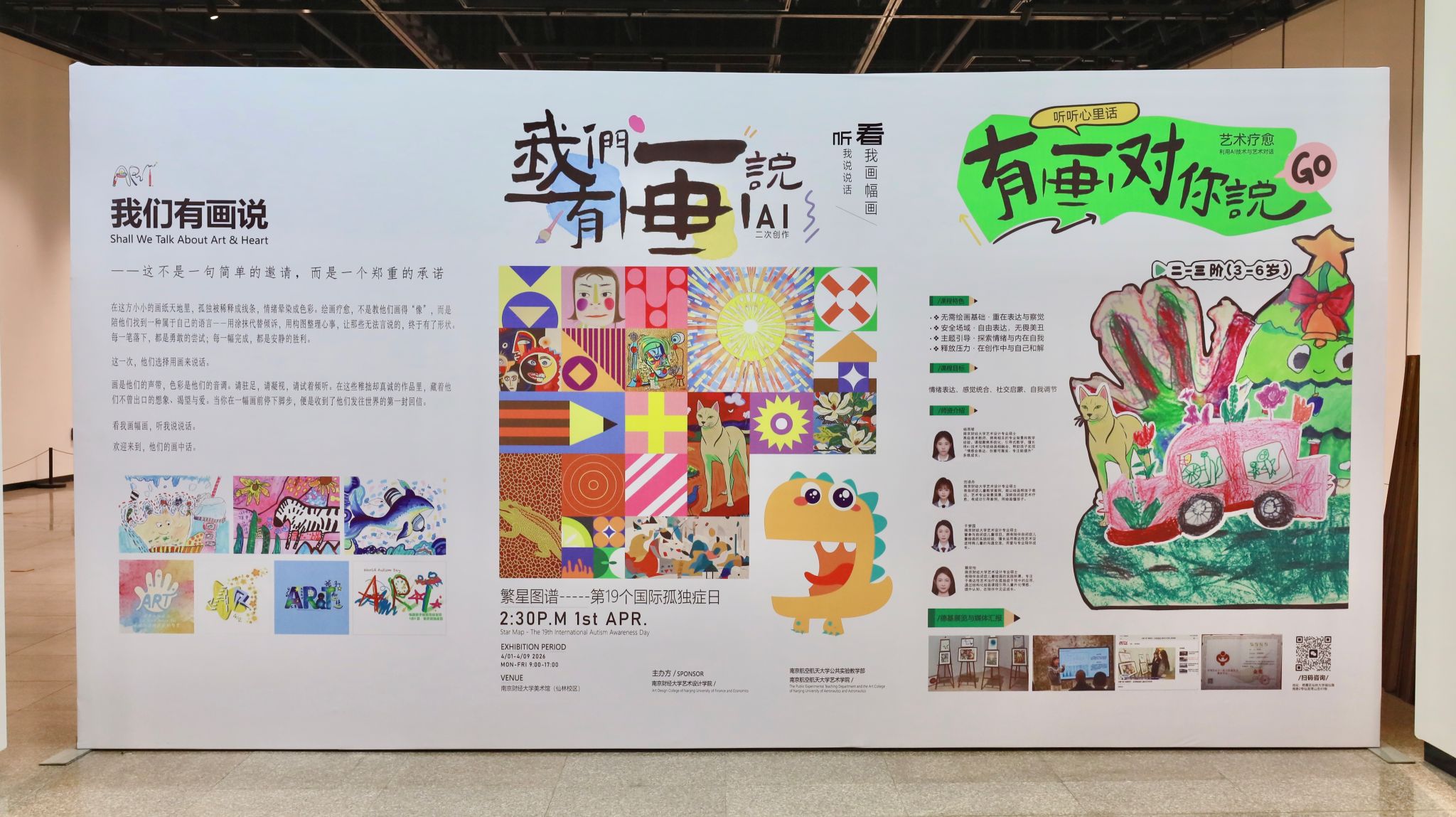 4月1日下午,在第19个国际孤独症日来临之际,“我们有画说”孤独症儿童艺术展在仙林校区美术馆温情启幕。本次展览由伟德官网艺术设计学院主办,南京航空航天大学公共实验教学部、艺术学院共同参与。党委常委、副校长叶林祥出席开幕式,南京师范大学美术学院原院长、博士生导师李向伟,南京市栖霞区残联副理事长纪效斌,南京师范大学美术学院教授、博士生导师吴振涵,南京航空航天大学公共实验教学部许玲,伟德官网党委研究生工作部部长郝园园、校团委书记张蔚伟、学生处副处长袁怡琨、心理健康教育中心副主任吴垠、艺术设计学院全体党政领导班子成员和师生代表参加活动。