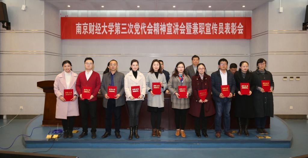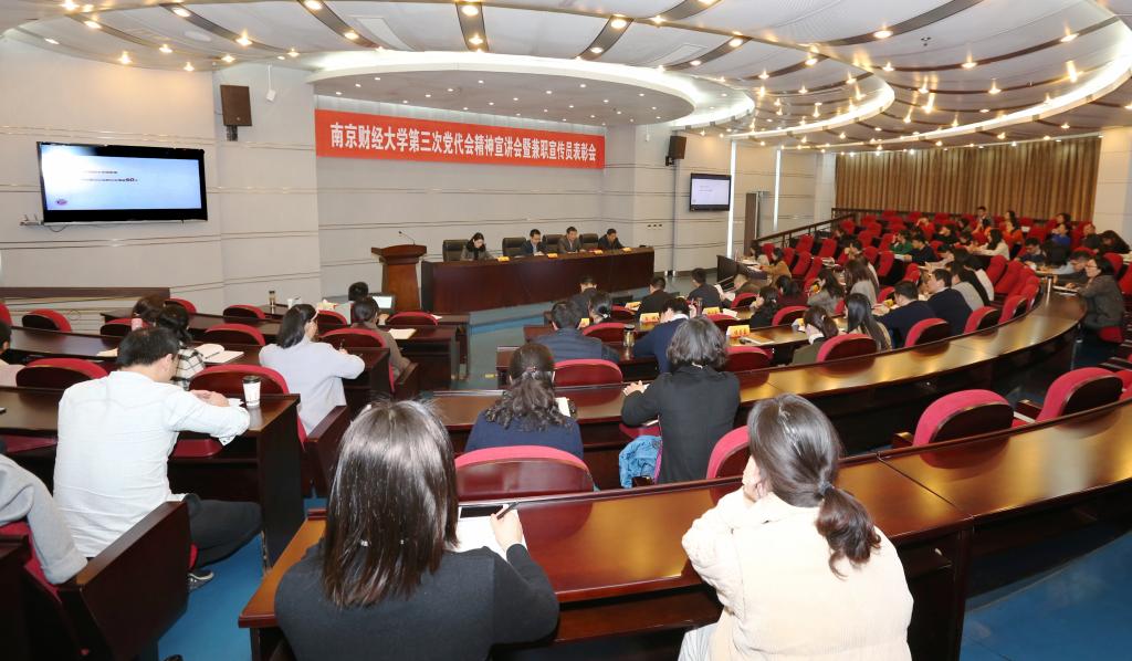 石奇部长宣读了《关于成立学习贯彻学校第三次党代会精神宣讲团的通知》(南财党宣字[2019]4号)。