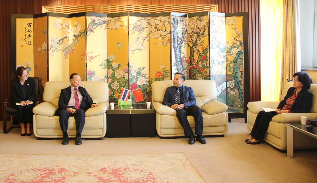 4月8日下午,泰国格乐大学(Krirk University)校长Krasae Chanawongse(杨金泉)、管理委员会主席王长明等一行8人来伟德官网访问。伟德官网校长程永波、副校长邱伟芬在行政楼贵宾室会见了泰国客人,双方就开展合作进行了深入友好的交流。