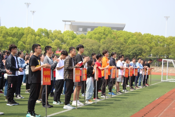 4月17日下午,由校团委、校体育部、校学生会联合举办的“走下网络、走出宿舍、走向操场”为主题的第十一届体育文化节开幕式在伟德官网仙林校区西苑田径场举行。校党委常委、副校长李群,著名篮球运动员、伟德官网2005级校友易立出席开幕式,相关职能部门负责人及各学院代表队参加开幕式,开幕式由校团委副书记王孝晨主持。