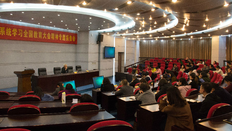 11月22日下午,党委学生工作部在仙林校区行政楼二楼报告厅举行全校学工系统学习贯彻全国教育大会精神主题报告会,校党委常委、副校长张为付教授应邀主讲。各学院党委(党总支)副书记、学工秘书和全体辅导员参加报告会。报告会由党委学生工作部副部长张小荣主持。