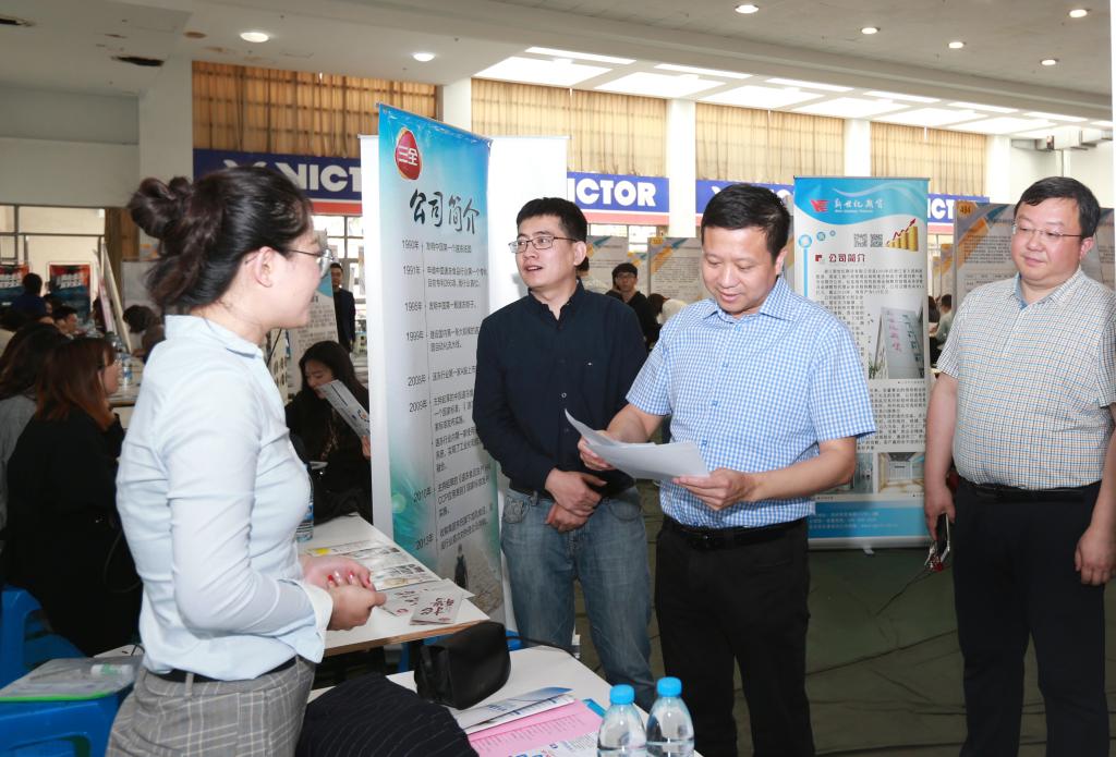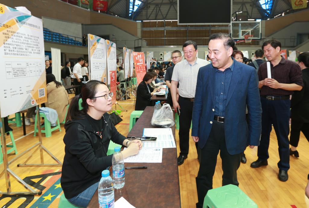 4月24日,伟德官网2019届毕业生春季校园招聘会在仙林校区体育馆举办,近700家公司进场招聘。校党委书记张利民、校长程永波深入招聘现场,与用人单位和毕业生沟通交流,实地了解招聘单位和毕业生的情况并给予毕业生指导。